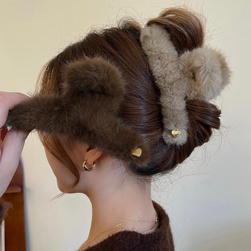 バンスクリップ ハート付き ヘアアクセ ジュエリー アクセサリー 通販 ブラック ベージュ グレー ブラウン