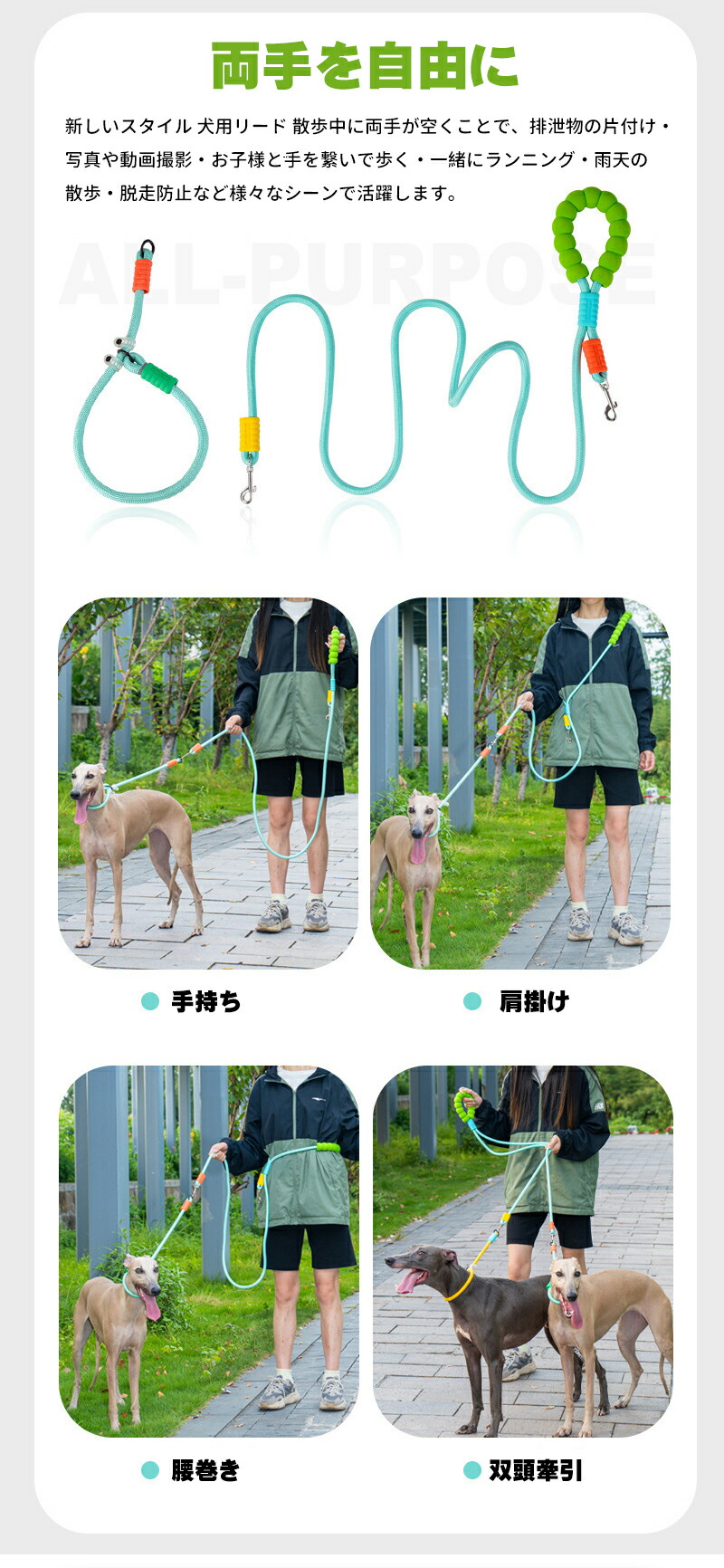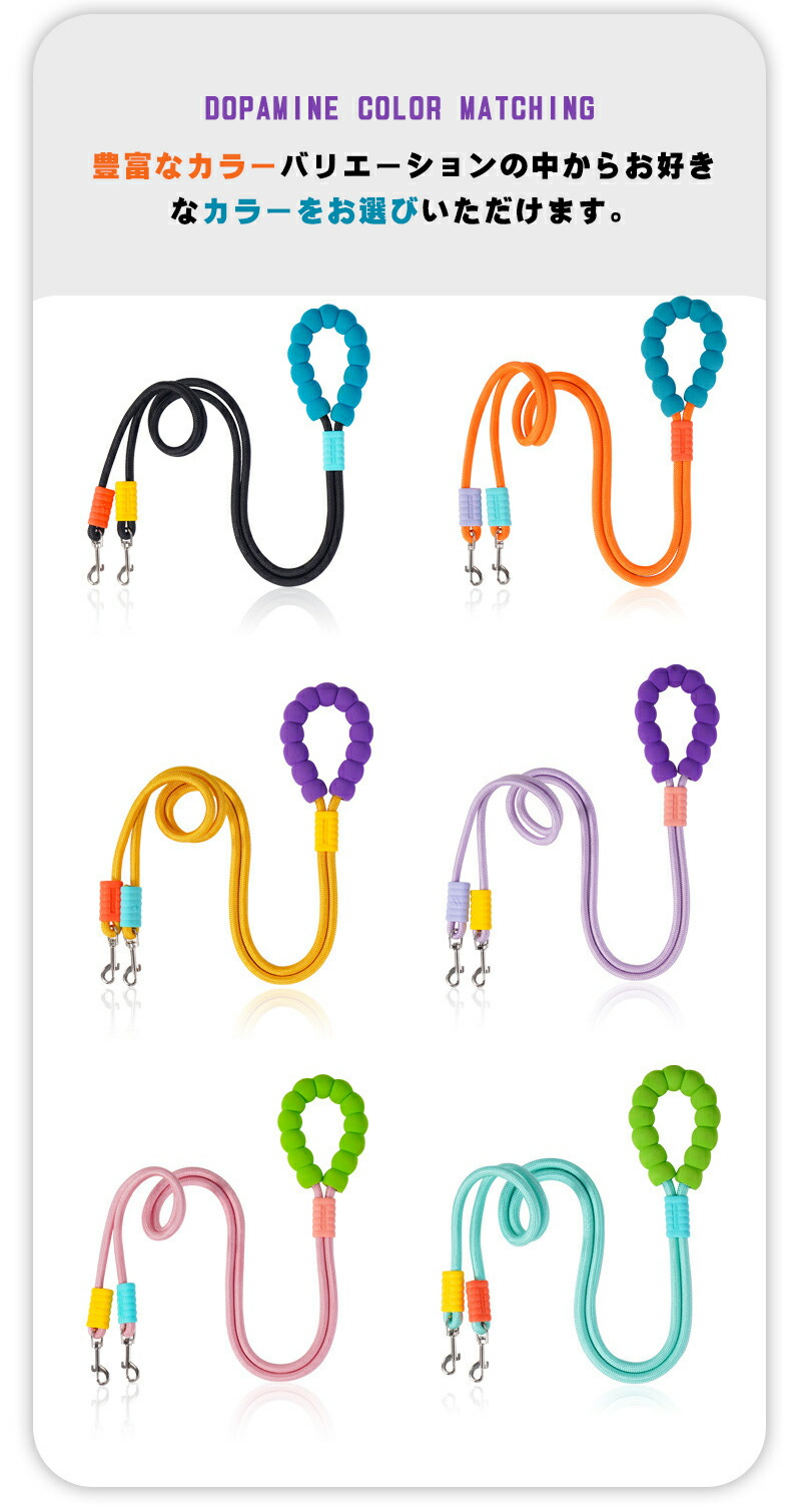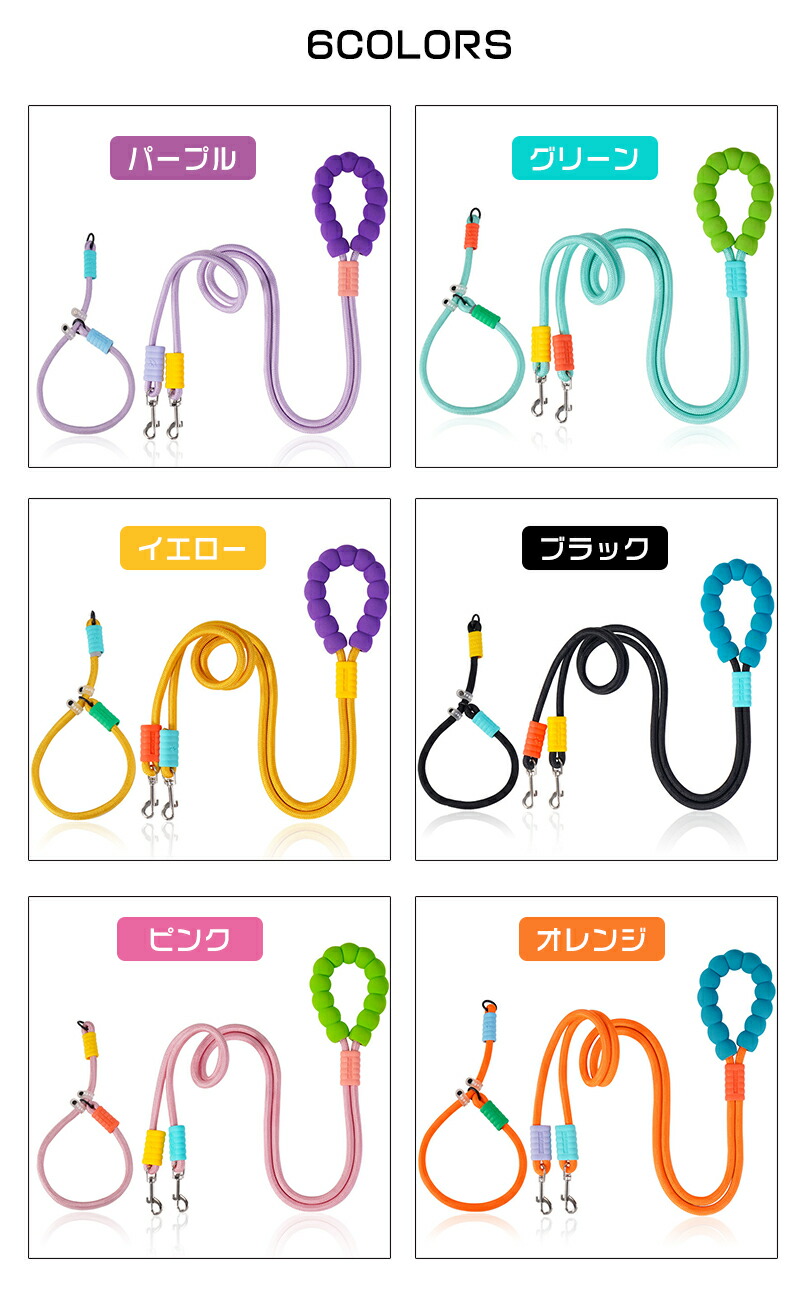 犬 リード ショルダーリード 1.1m ペット ペットグッズ 続々入荷中 オレンジ ピンク ブラック イエロー グリーン パープル 1頭引き(Pロープ*1) 2頭引き(Pロープ*2)