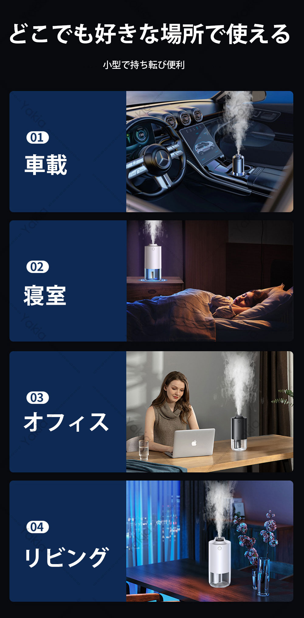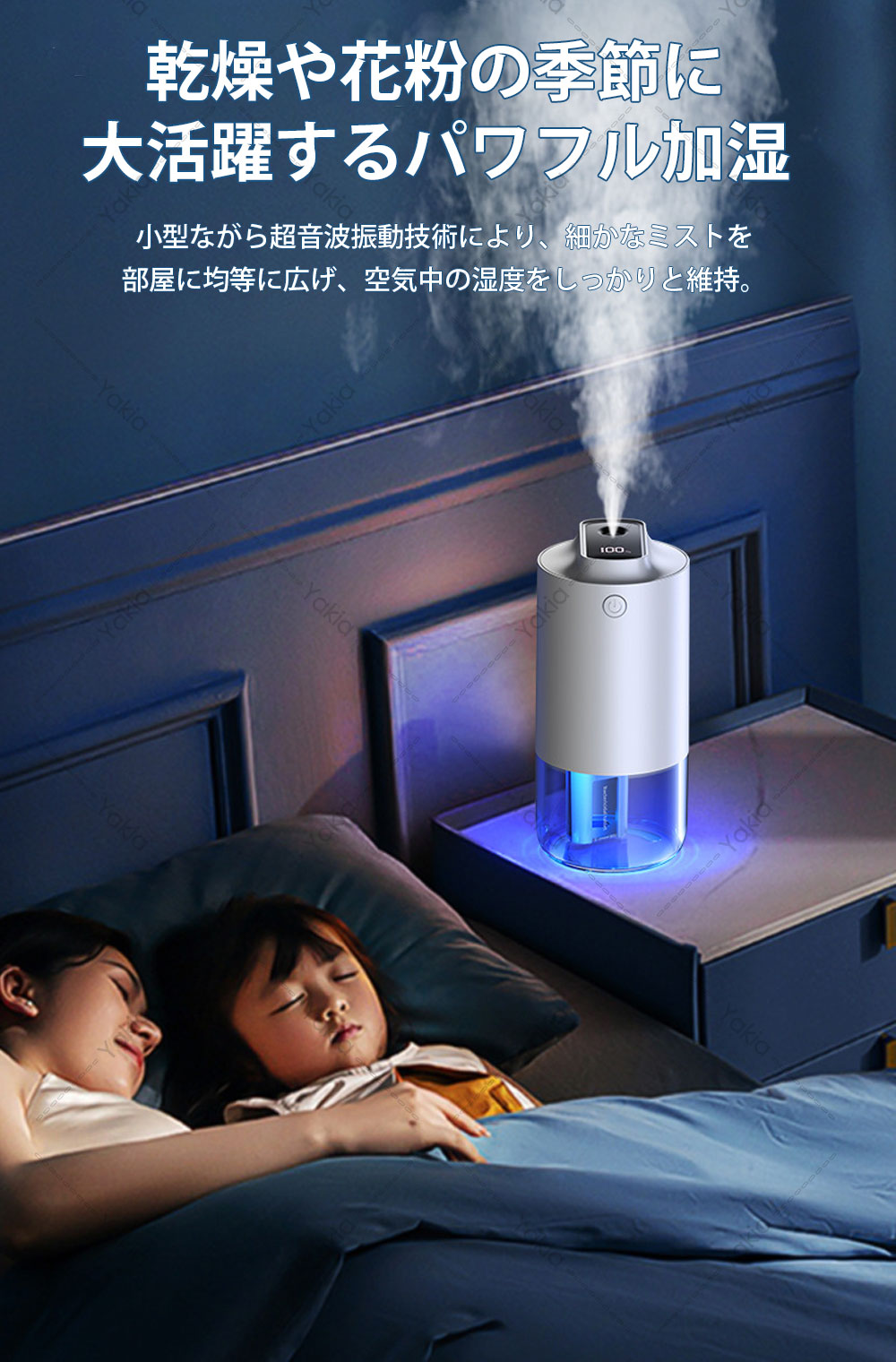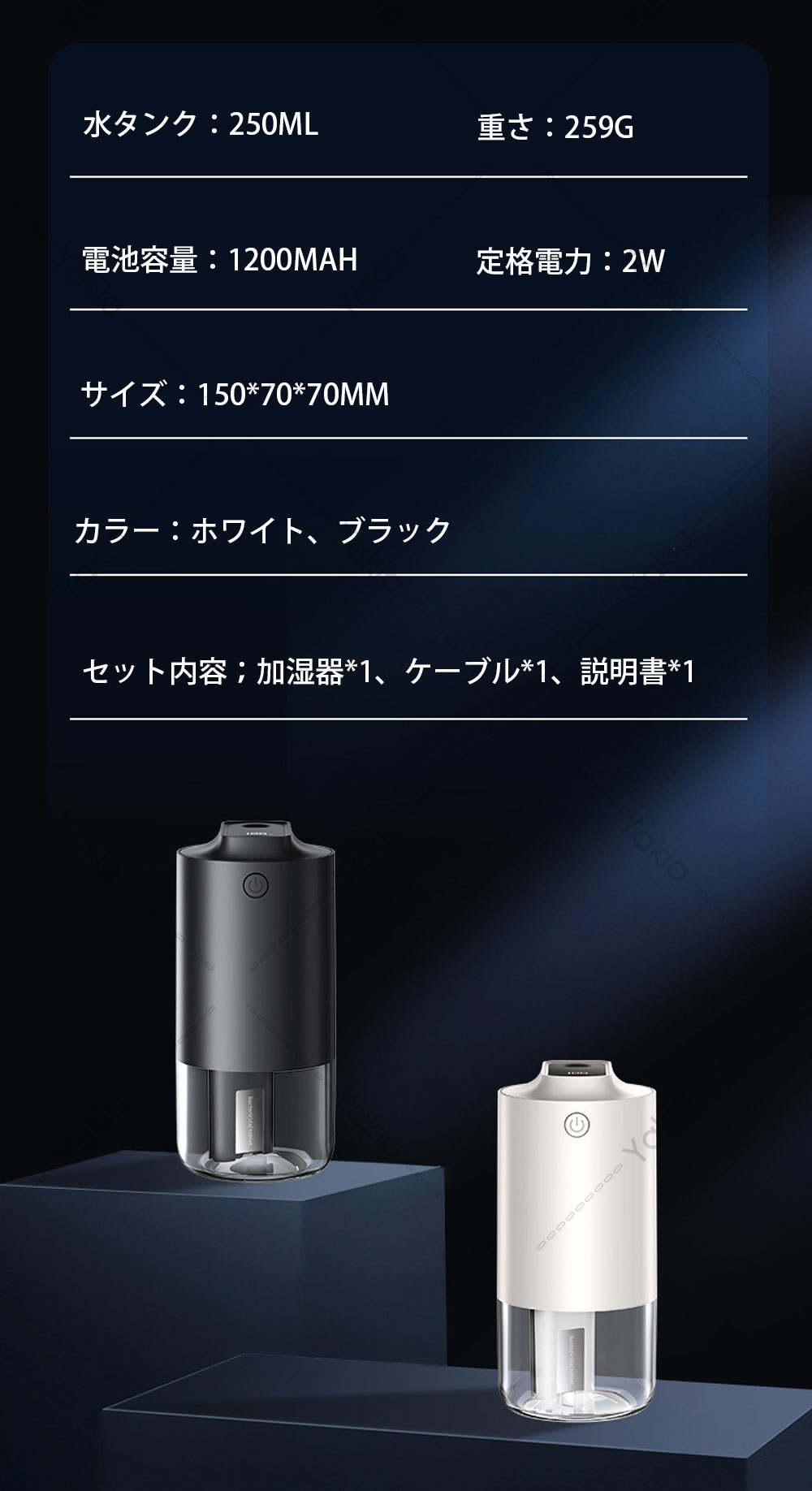加湿器 小型 卓上 超音波加湿器 車用 ホワイト ブラック
