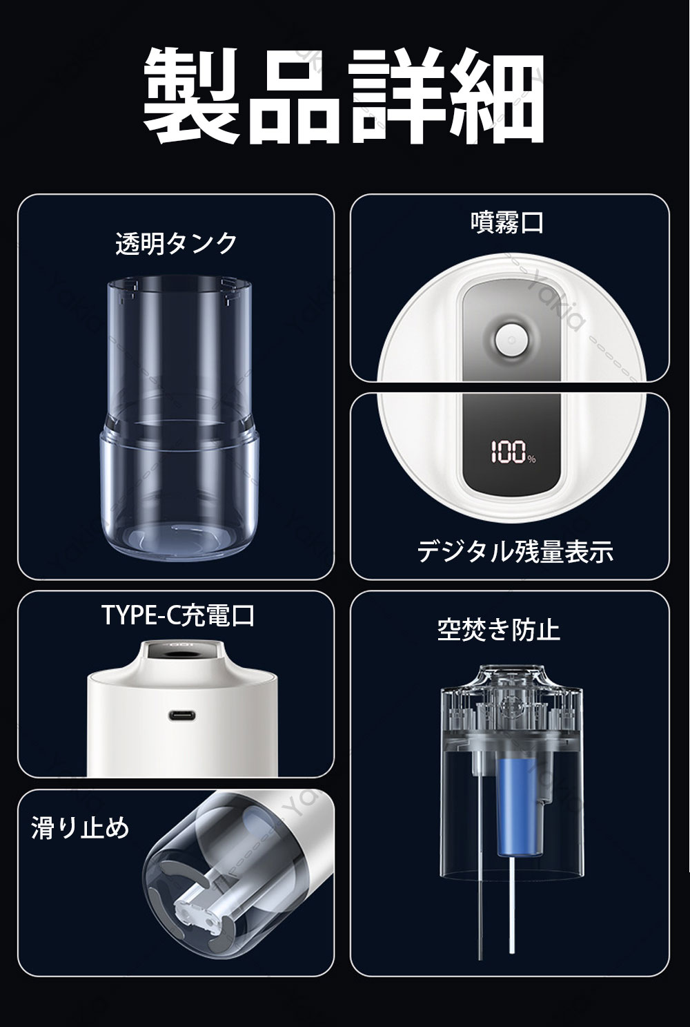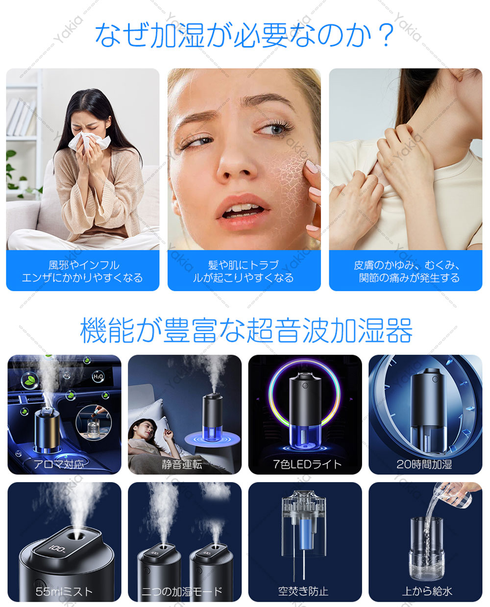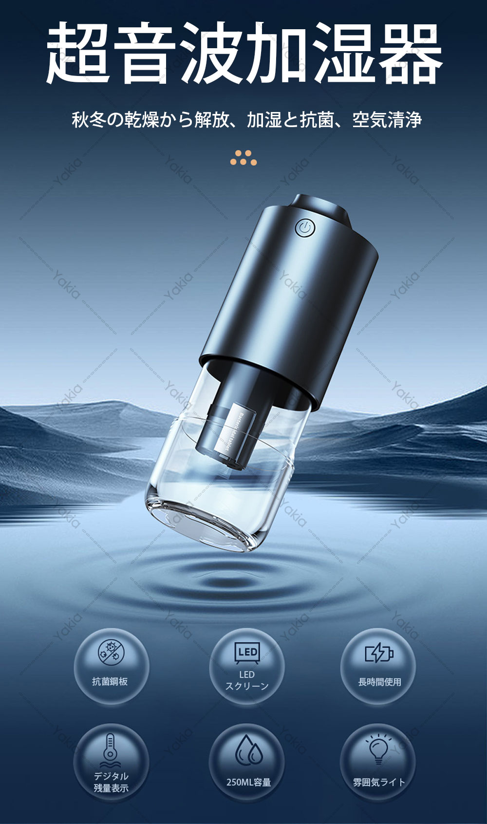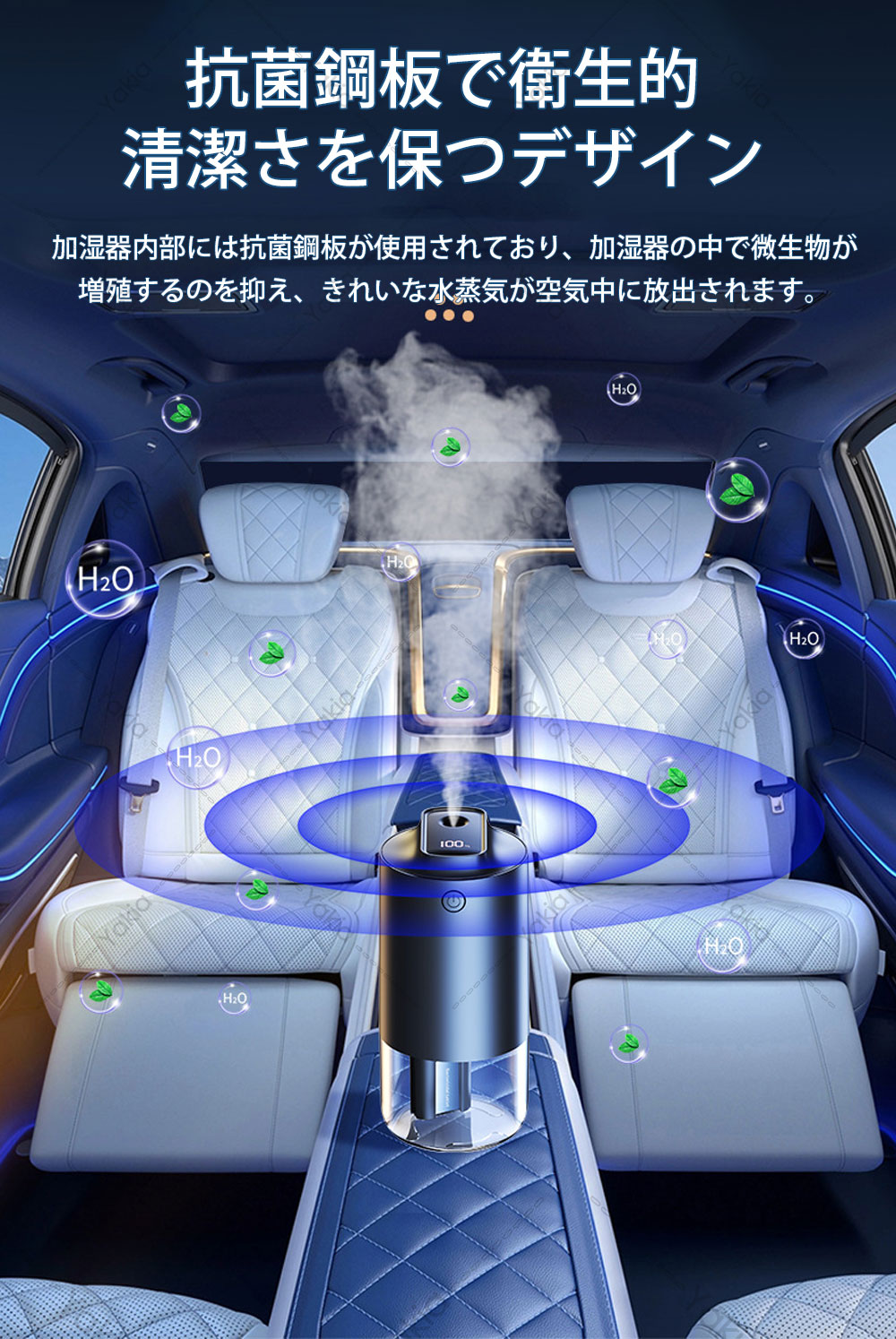 加湿器 小型 卓上 超音波加湿器 車用 ホワイト ブラック