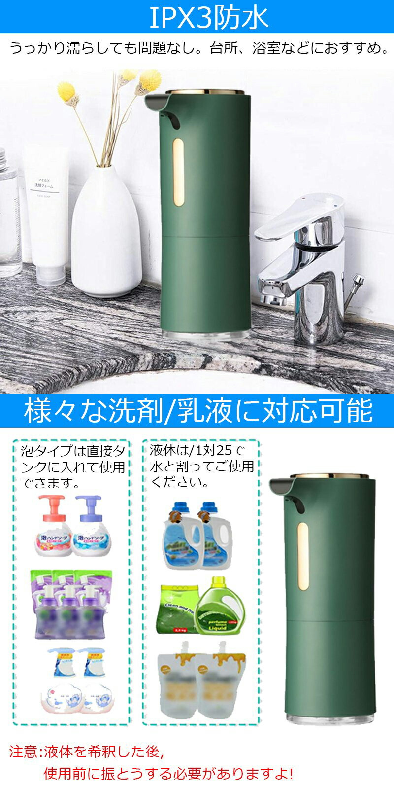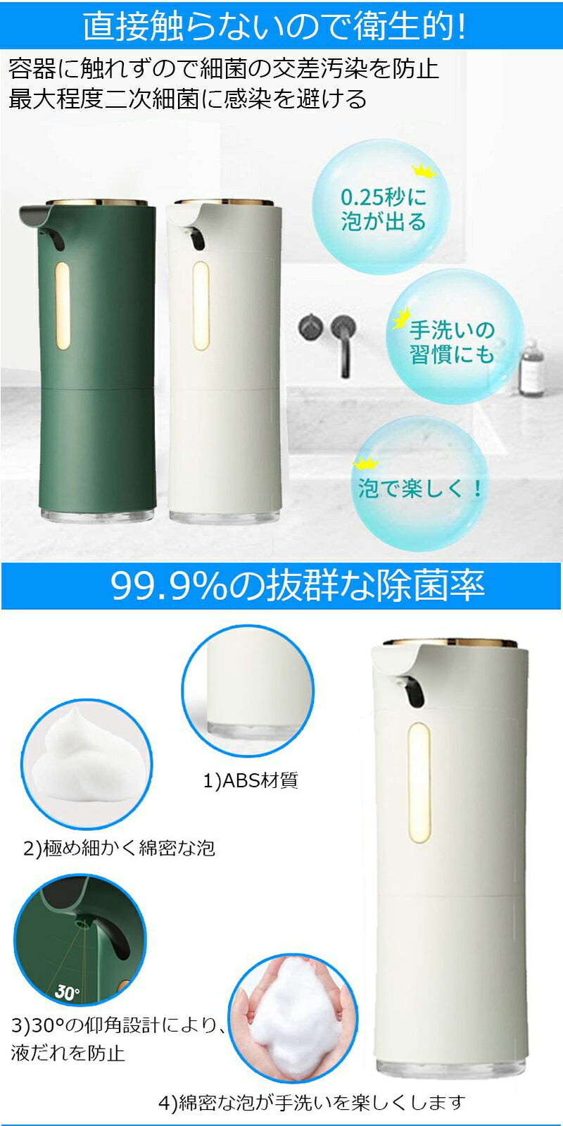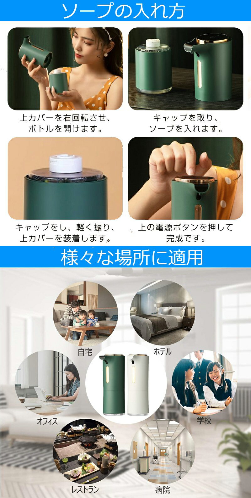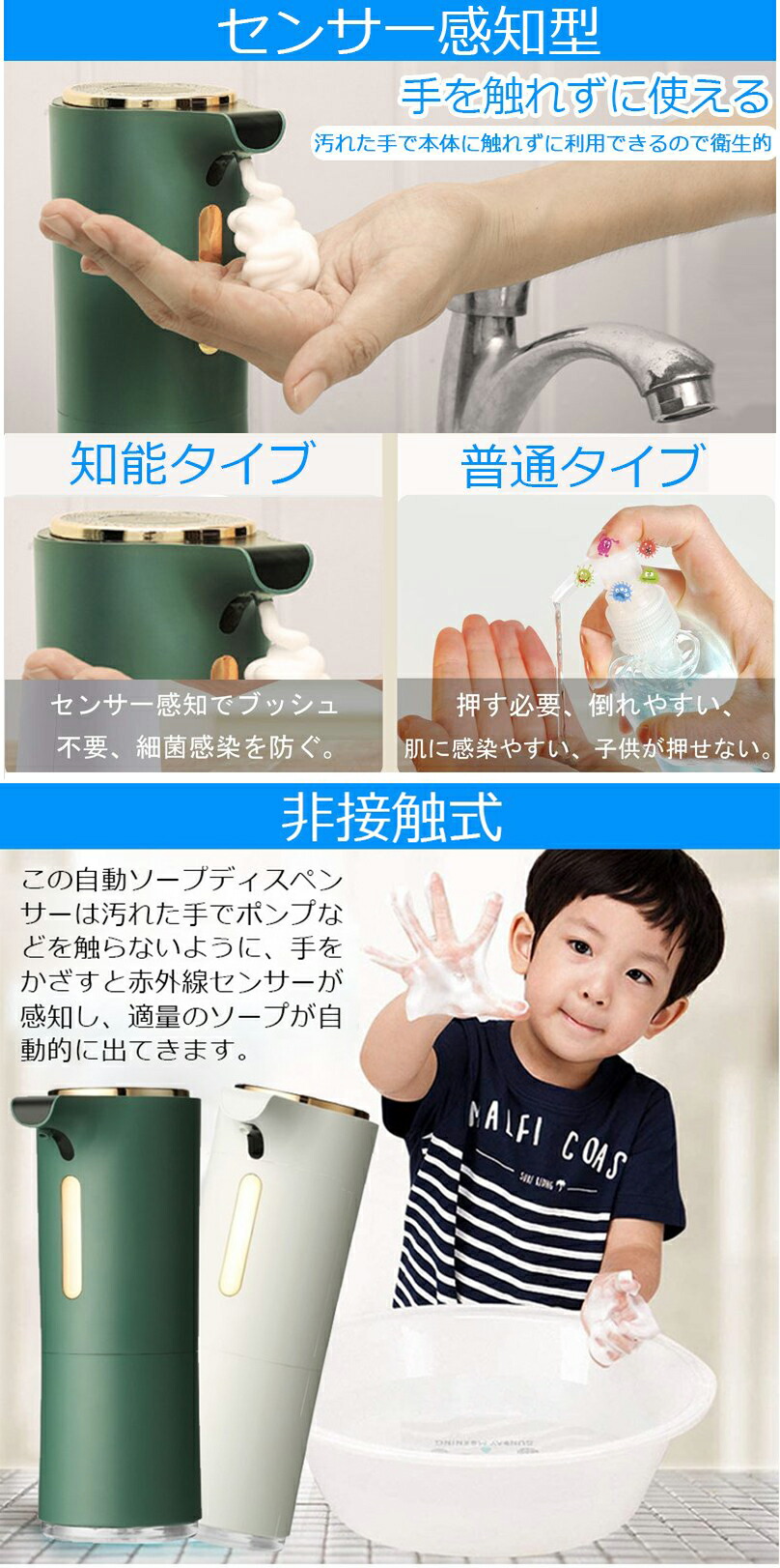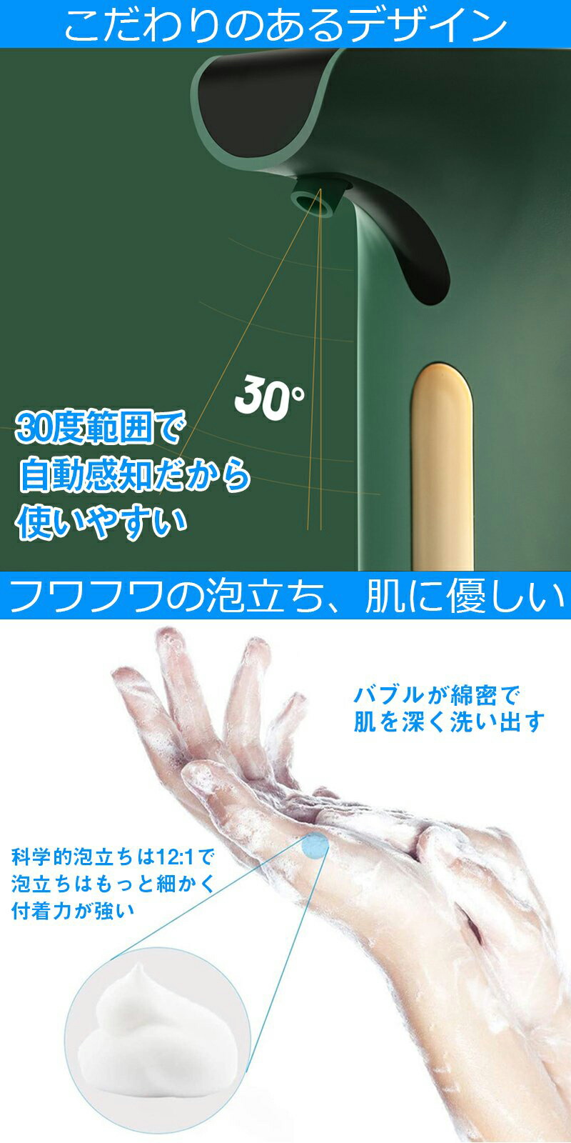 ソープディスペンサー 自動 泡 オート グリーン ホワイト