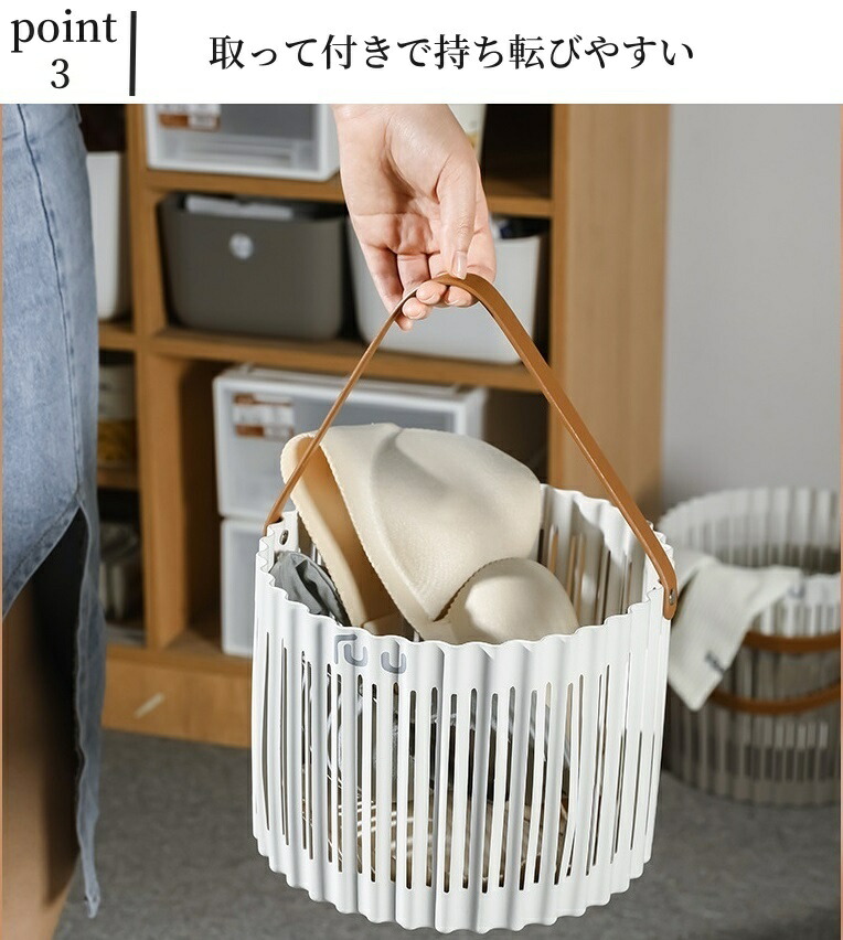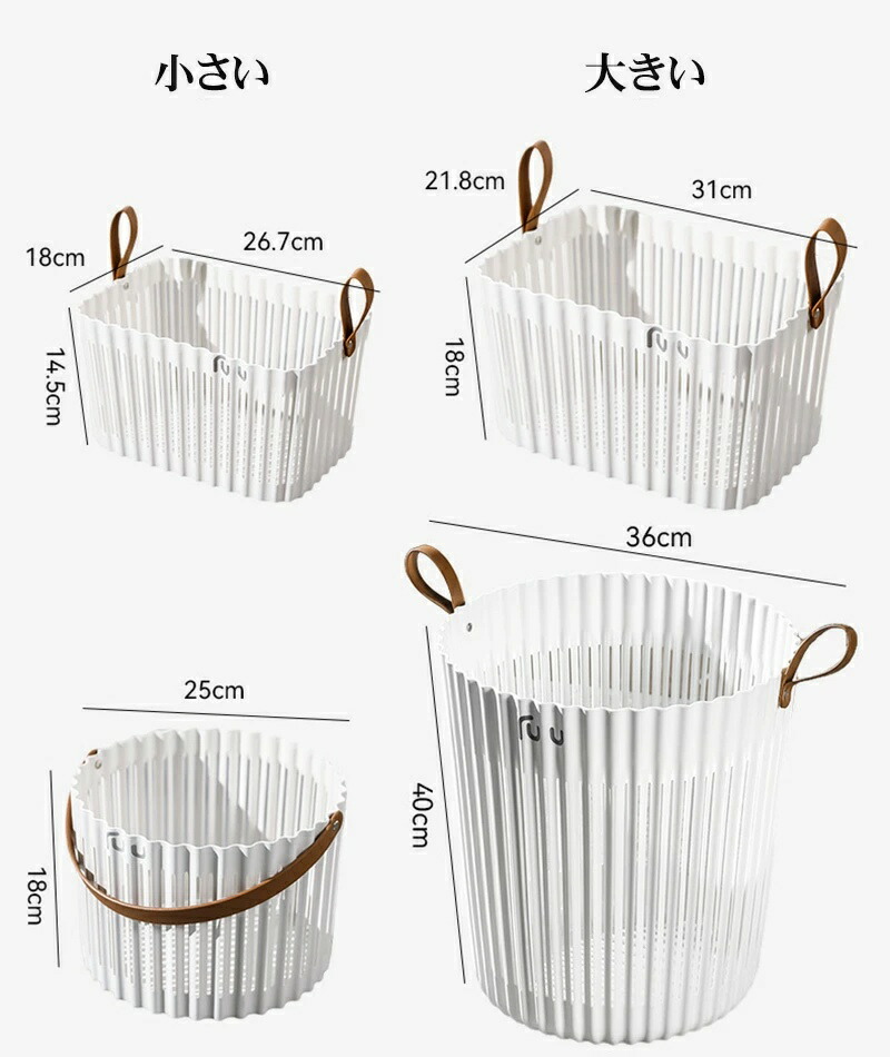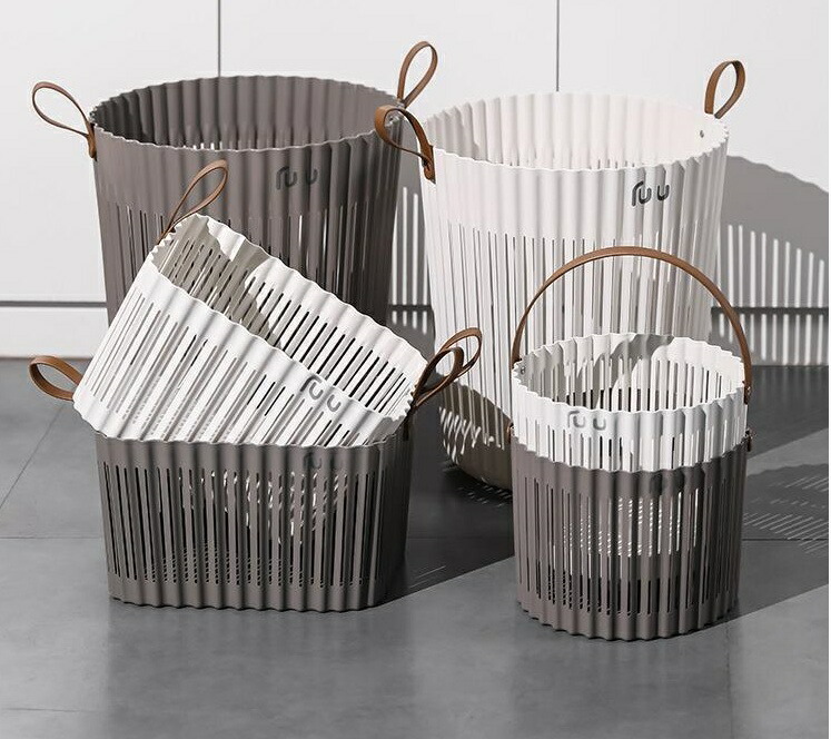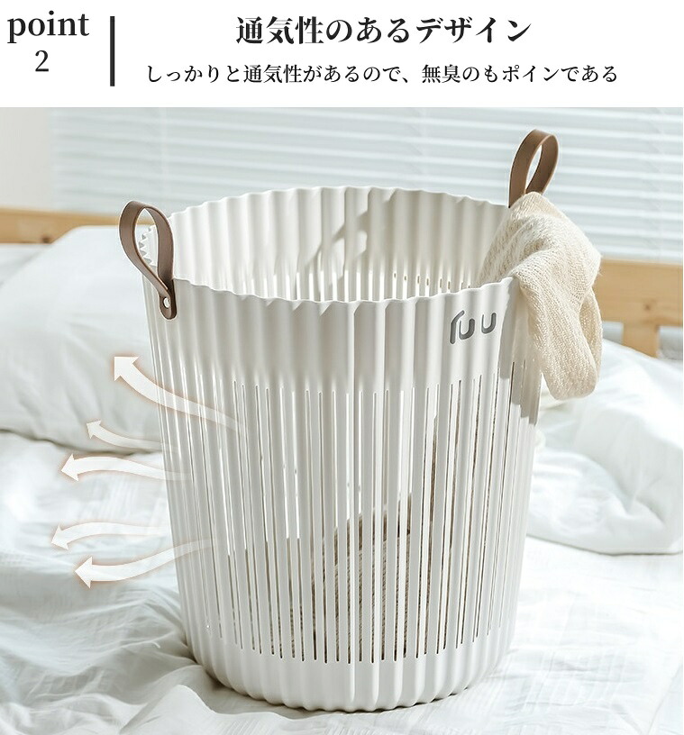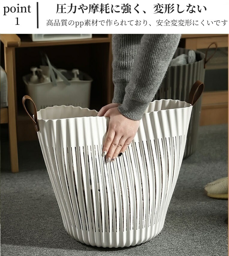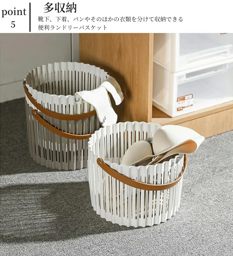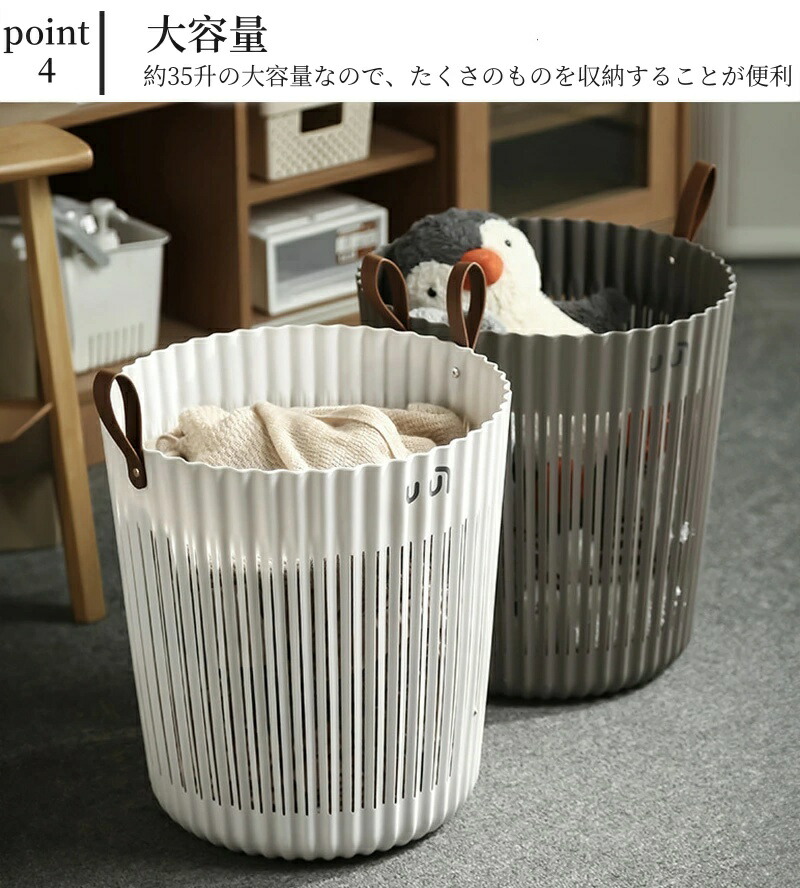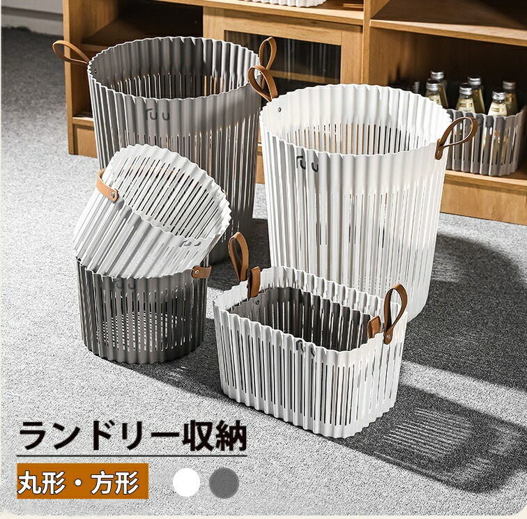 ランドリーバスケット 脱衣かごランドリ 丸形 方形 ホワイト グレー