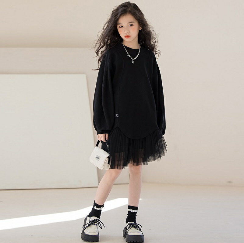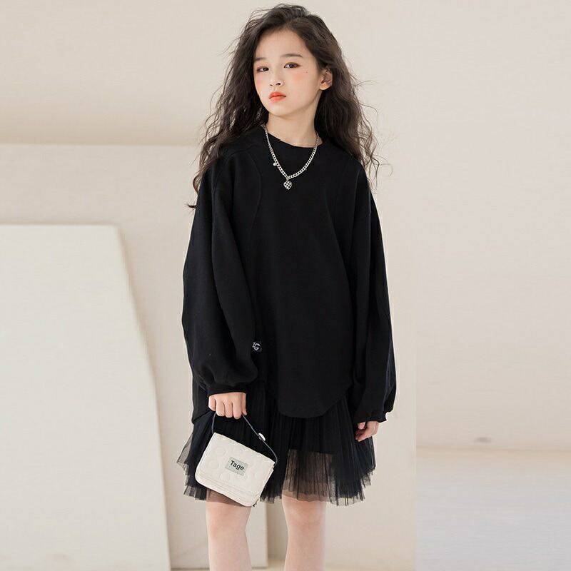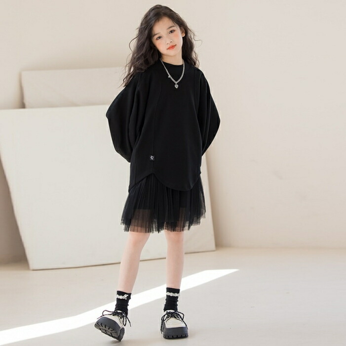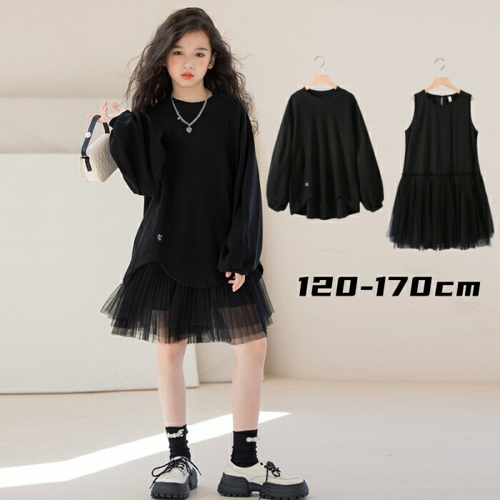 子供服 ワンピース 長袖 黒 重ね着 キッズ ワンピース 豊富な品揃え 120cm 130cm 140cm 150cm 160cm 170cm