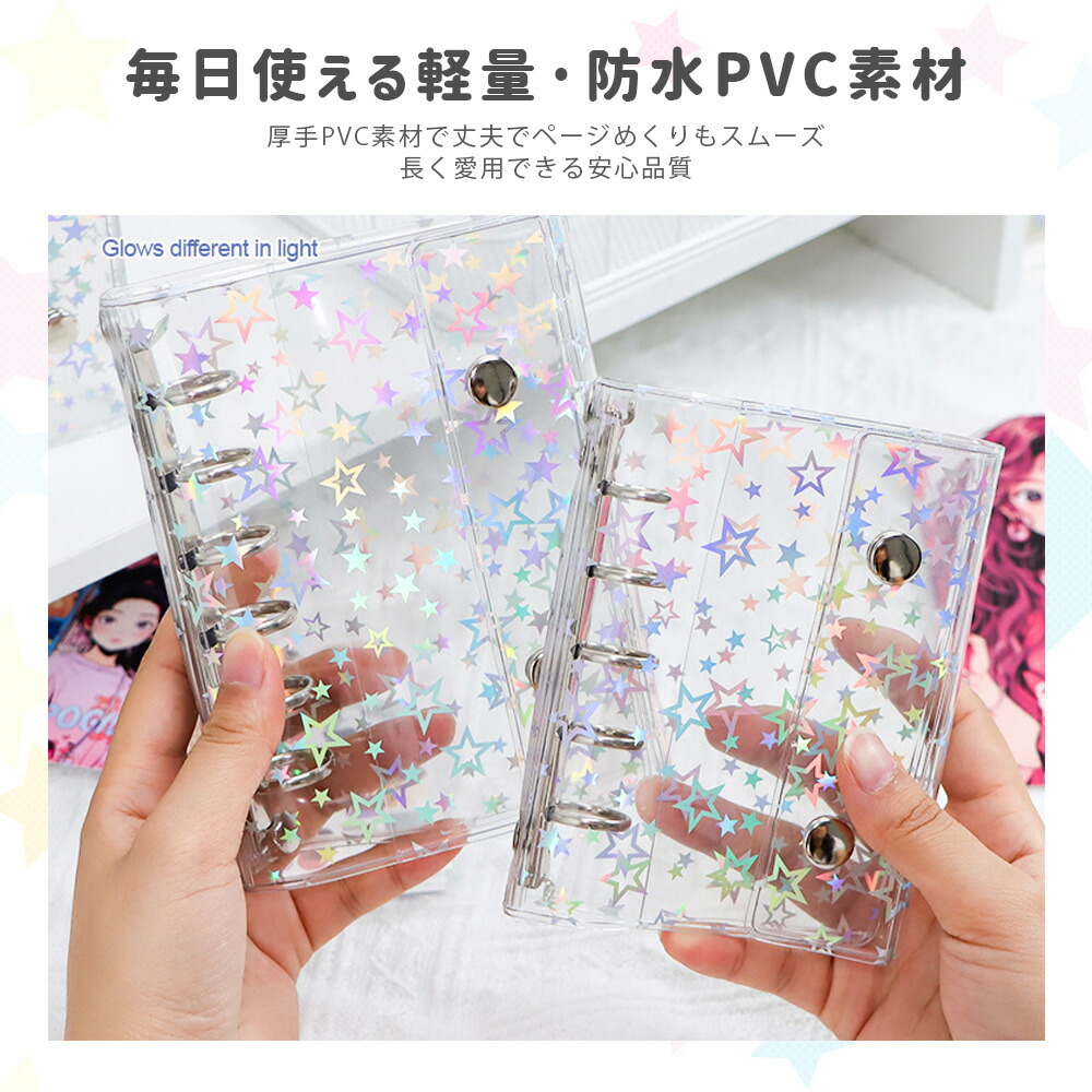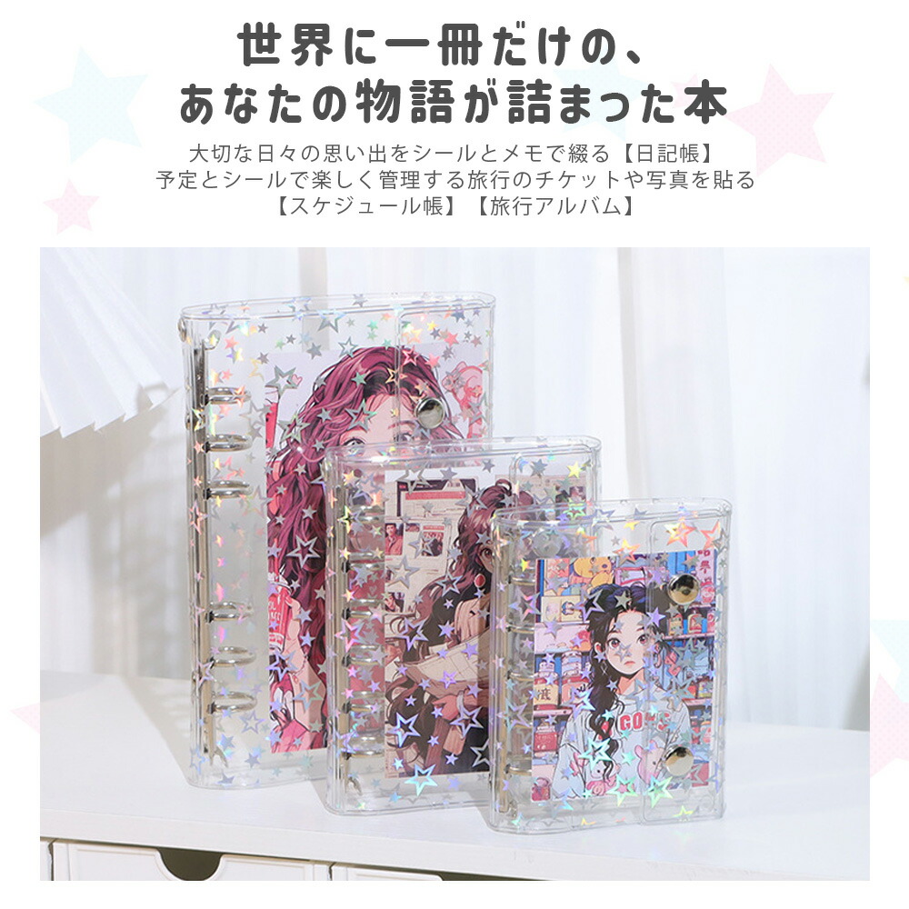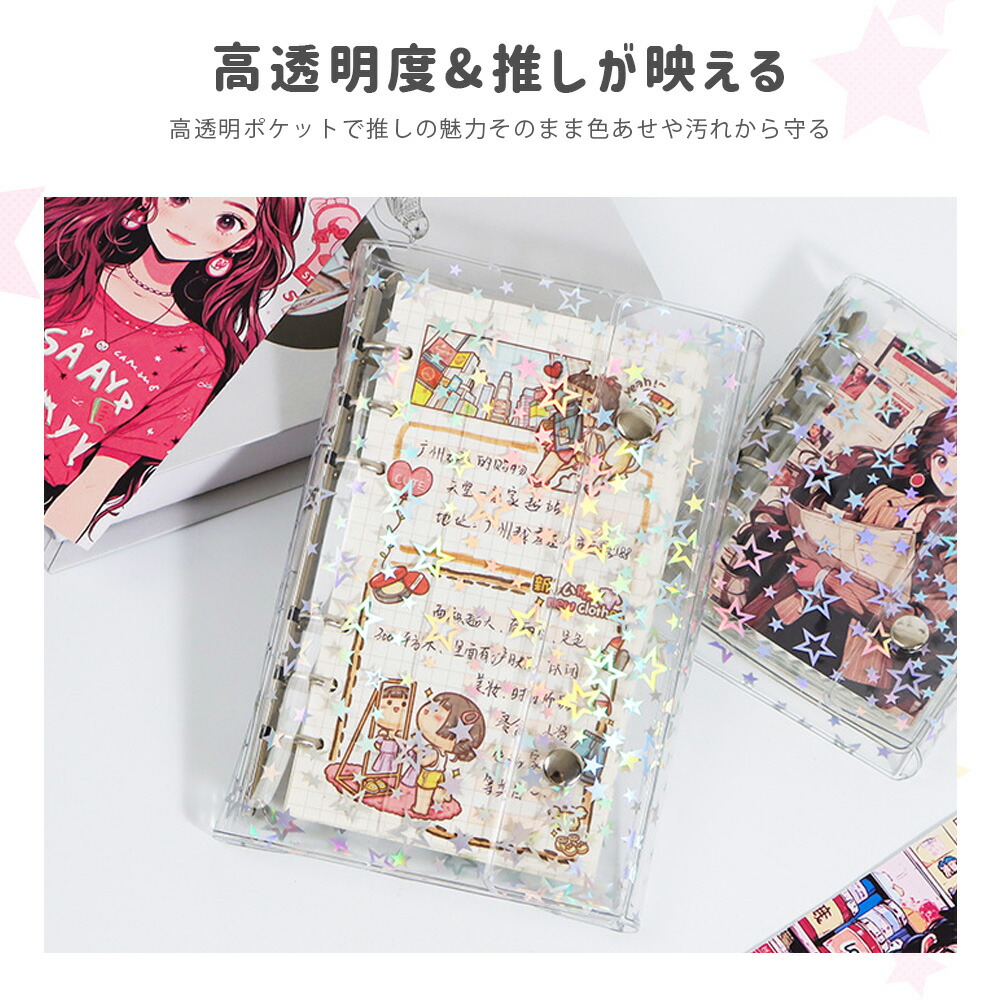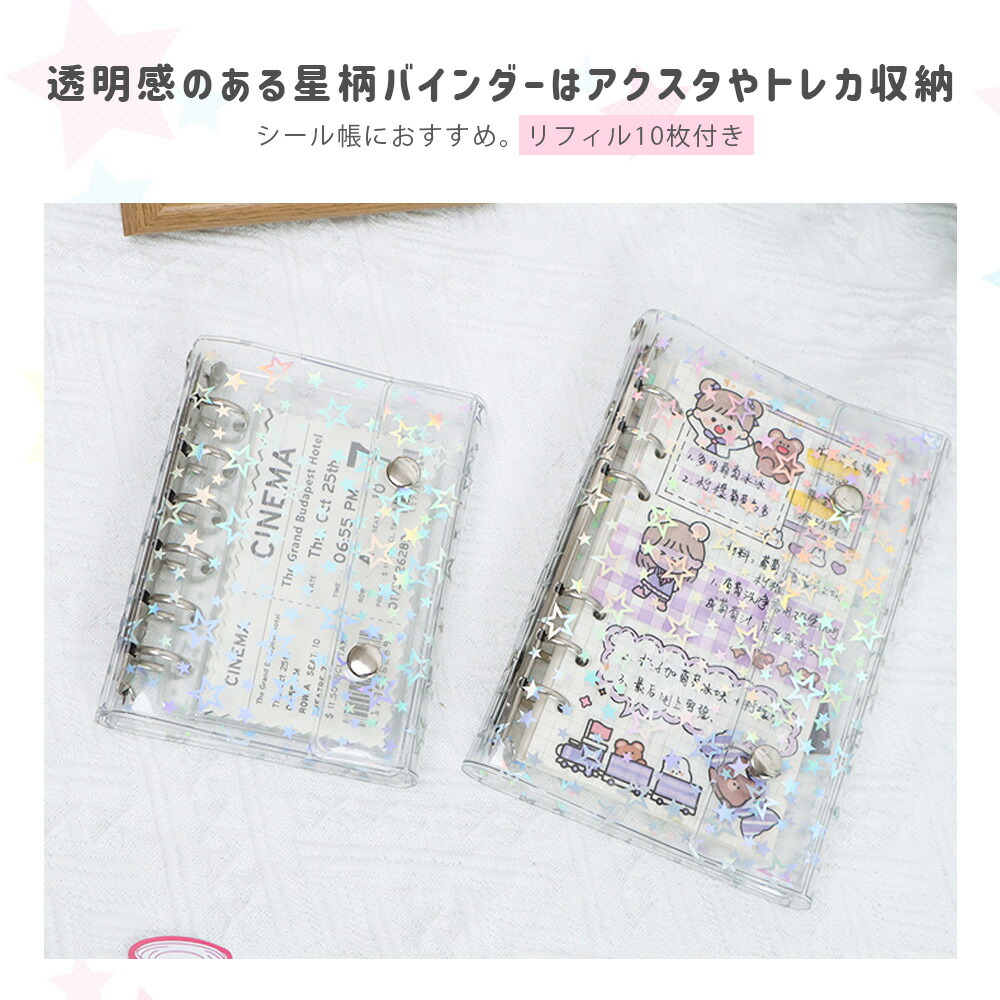 シールバインダー 透明シール帳 カバー 日用品雑貨 文房具 手芸 続々入荷中 星柄タイプ+リフィル10枚付き 全透明タイプ+リフィル10枚付き M5 A6 A7