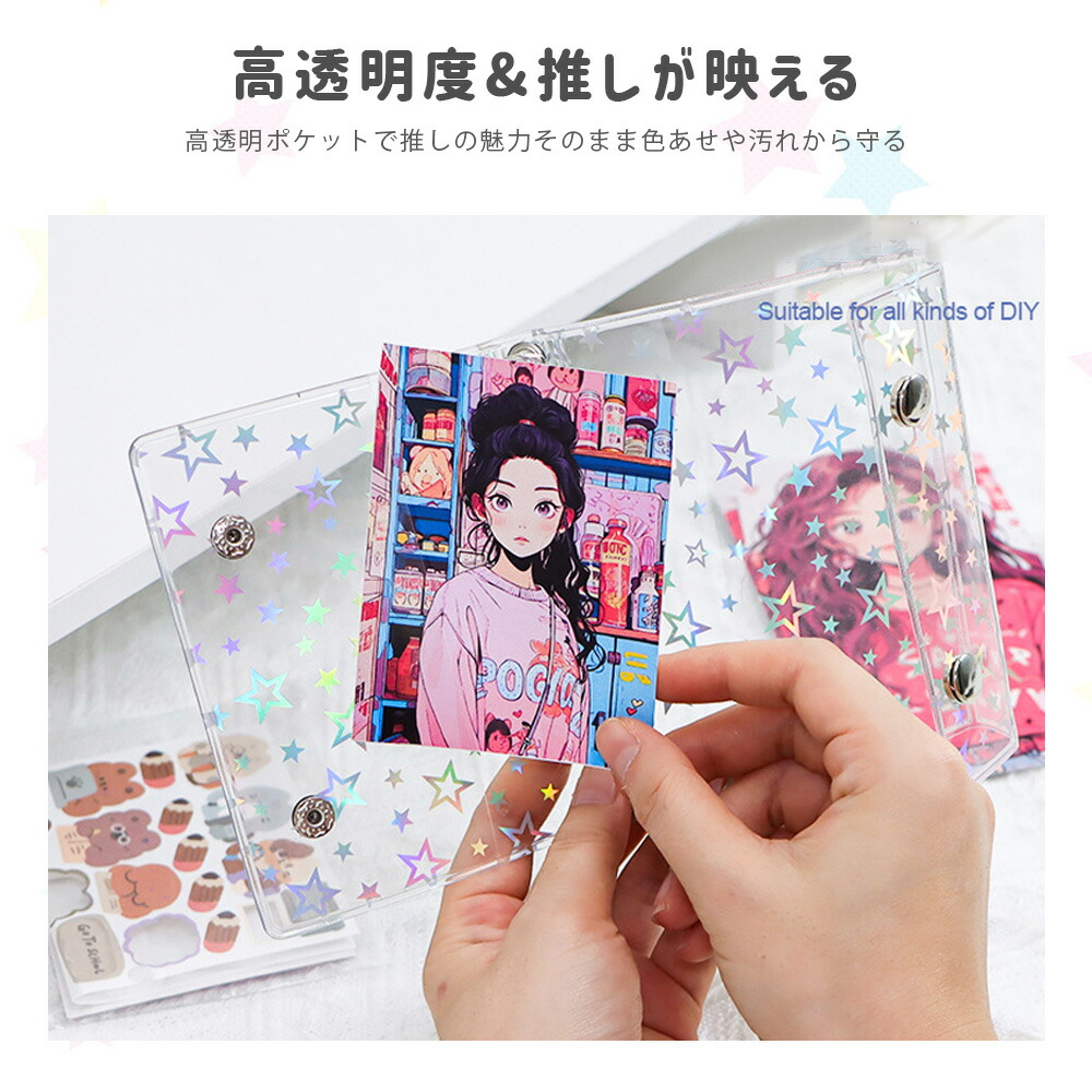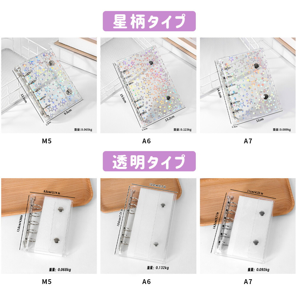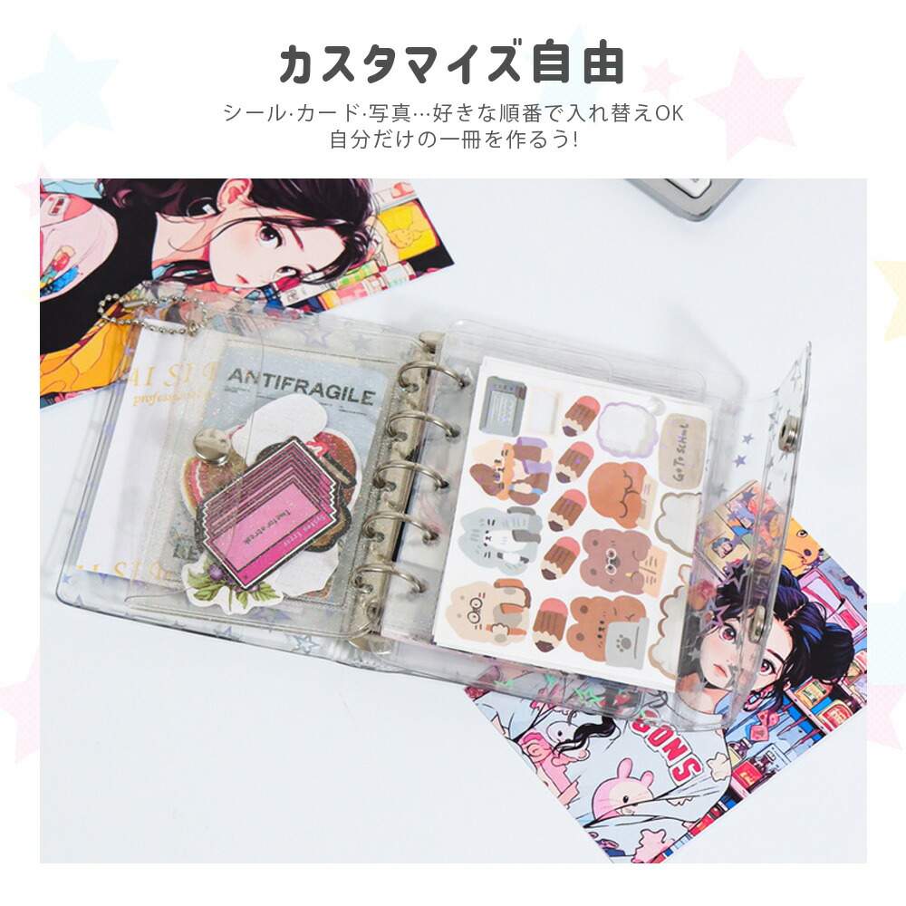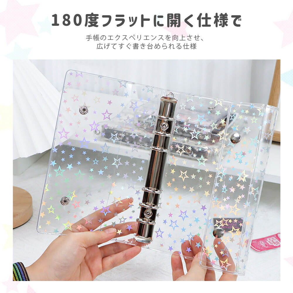 シールバインダー 透明シール帳 カバー 日用品雑貨 文房具 手芸 続々入荷中 星柄タイプ+リフィル10枚付き 全透明タイプ+リフィル10枚付き M5 A6 A7