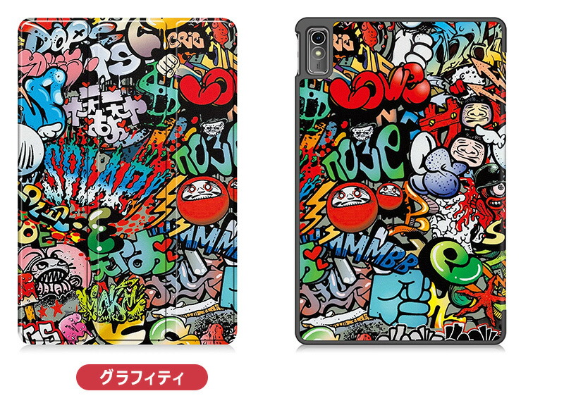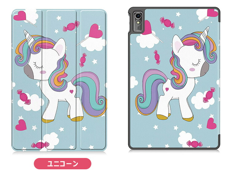 Lenovo tab7 ケース 三つ折 ギャラクシー グラフィティ ユニコーン ネコ ビッグアイ アプリコットフラワー