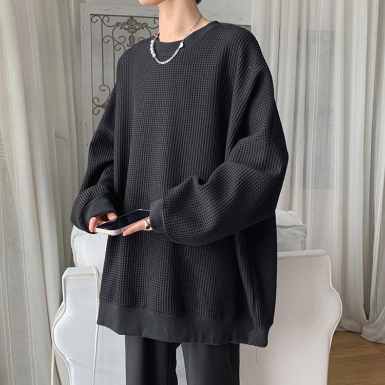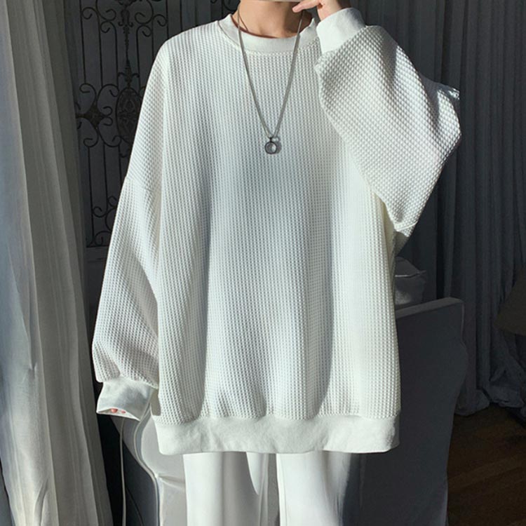 ロンT 長袖 メンズ ゆったり ワッフ メンズファッション 特集 ブラック ホワイト グレー M L XL 2XL