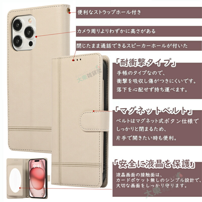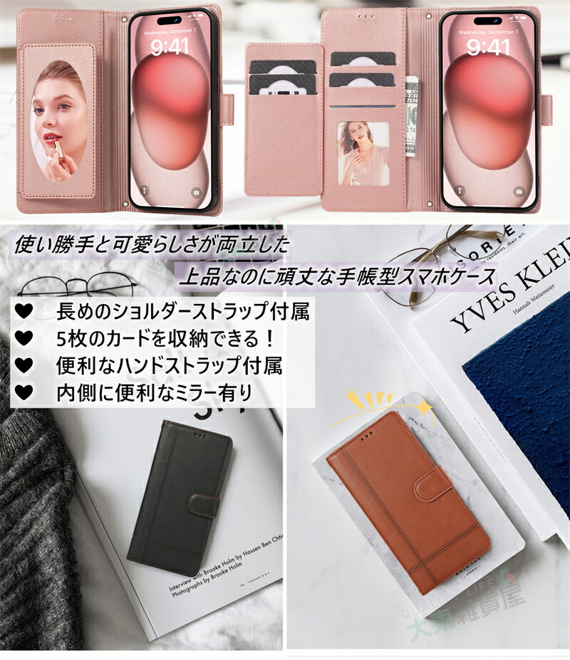 ミラー付き ハンドストラップ付き アク スマートフォン タブレット 人気 ベージュ パープル ピンクゴールド ブラック ブラウン レッド AQUOS Sense10 AQUOS R10 AQUOS wish5 AQUOS Sense9 AQUOS Wish4 AQUOS Wish3 AQUOS Sense8 AQUOS Sense7 AQUOS Sense6/Sense6S AQUOS R9 AQUOS R9 Pro AQUOS R6