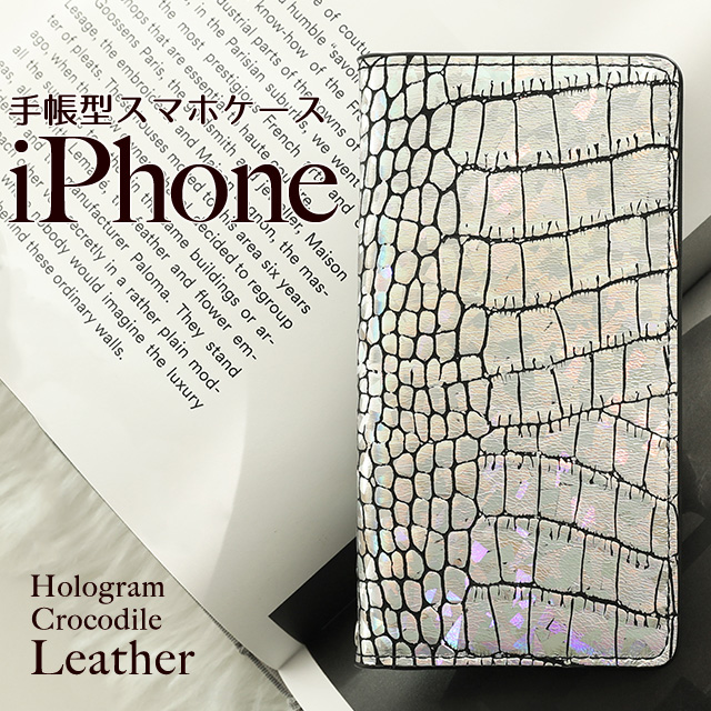 iPhone17 ケース Pro Max mini iPhone Air 16 15 14 SE 第3世代 iPhoneケース 手帳型 ホログラム クロコダイル 本革 ベルトなし iPhone13 柄
