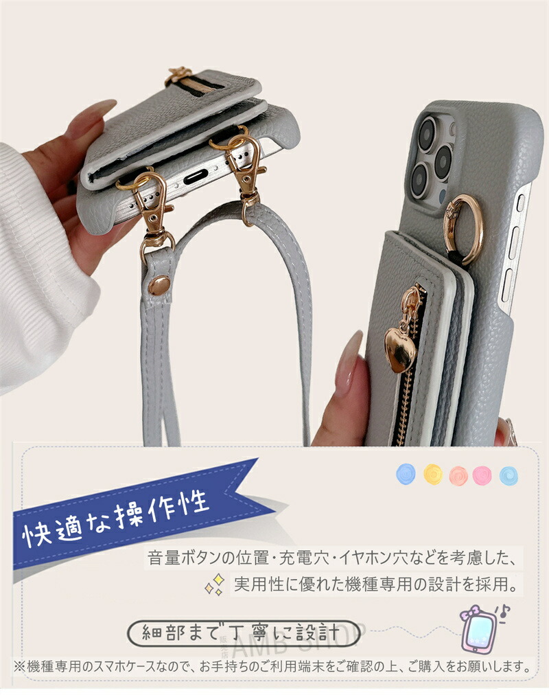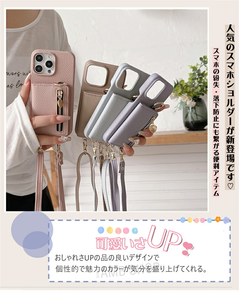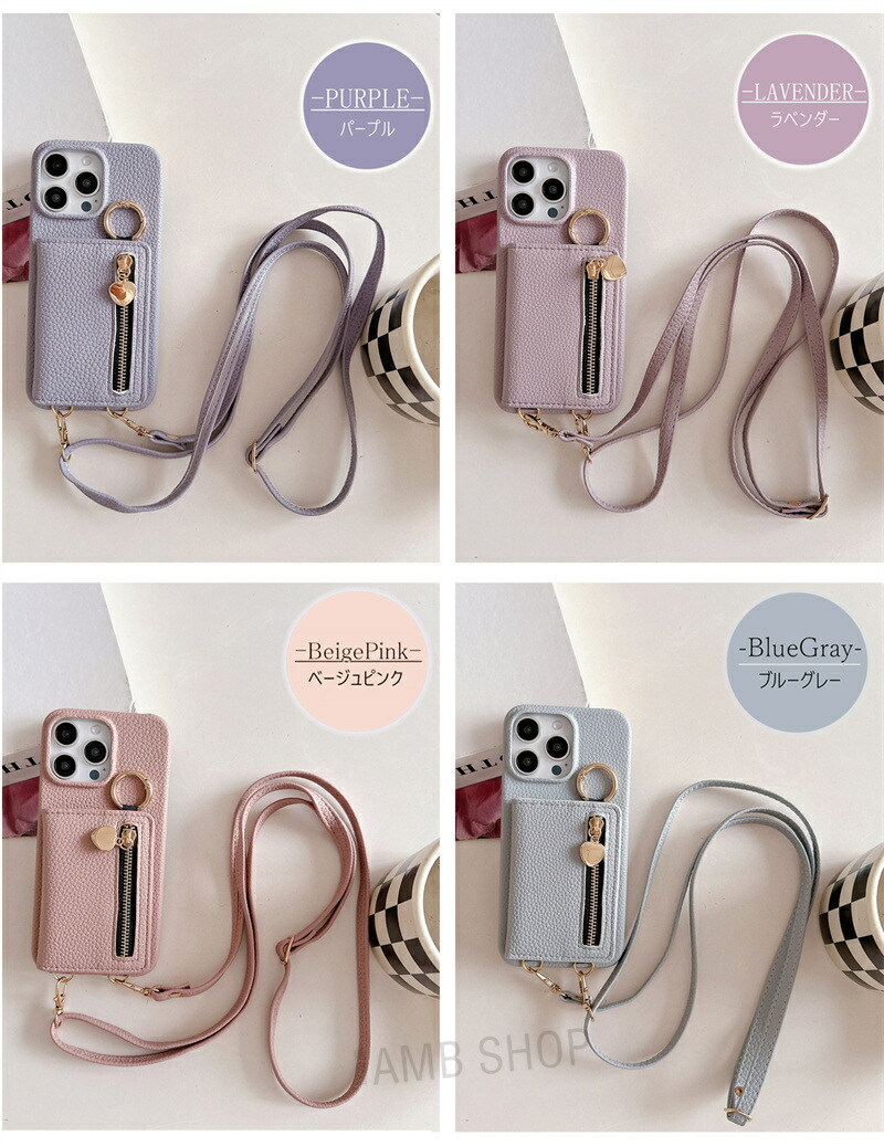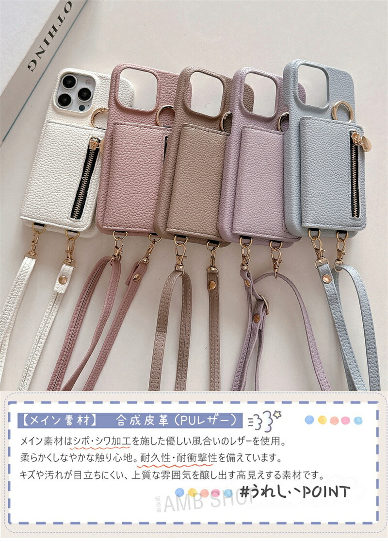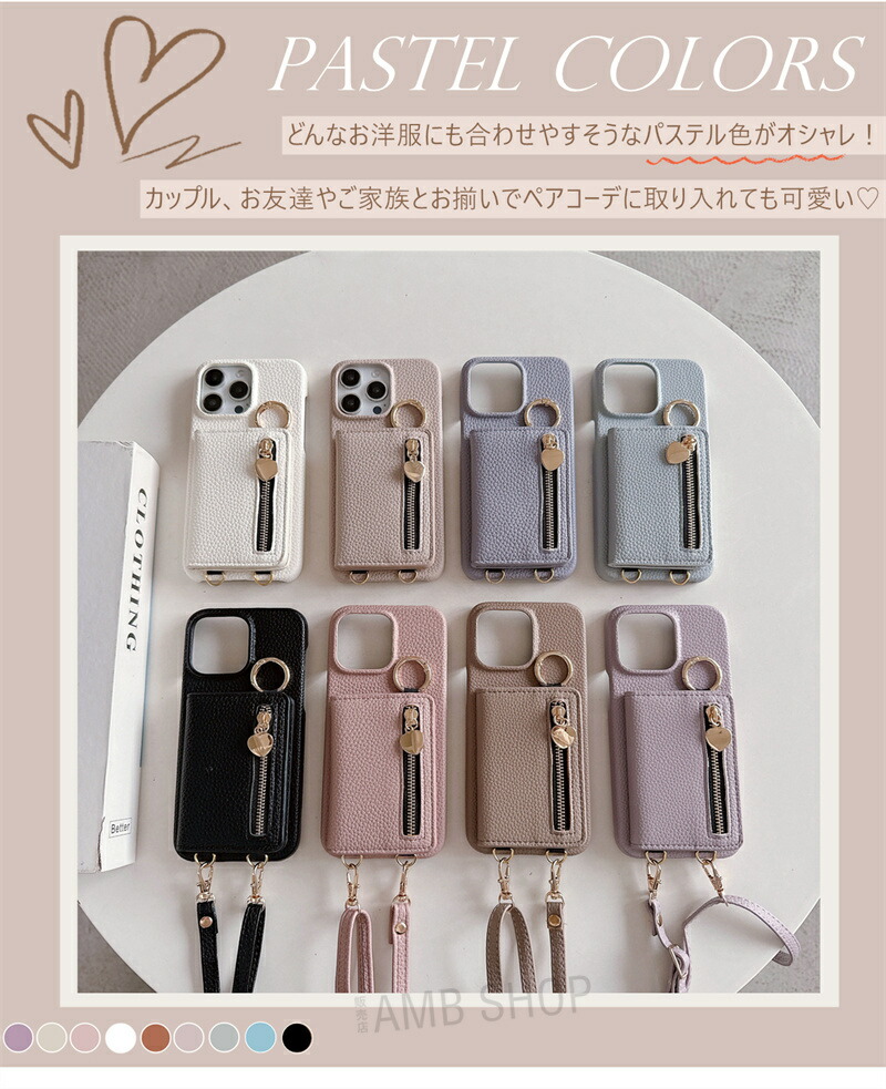スマホカバー 大人かわいい AMB スマホショルダー 背面手帳型 スマホケースショルダー AM-B タイプ ケース ジッパー チャック付き ジップ A-M-B SHOP ファスナー付き