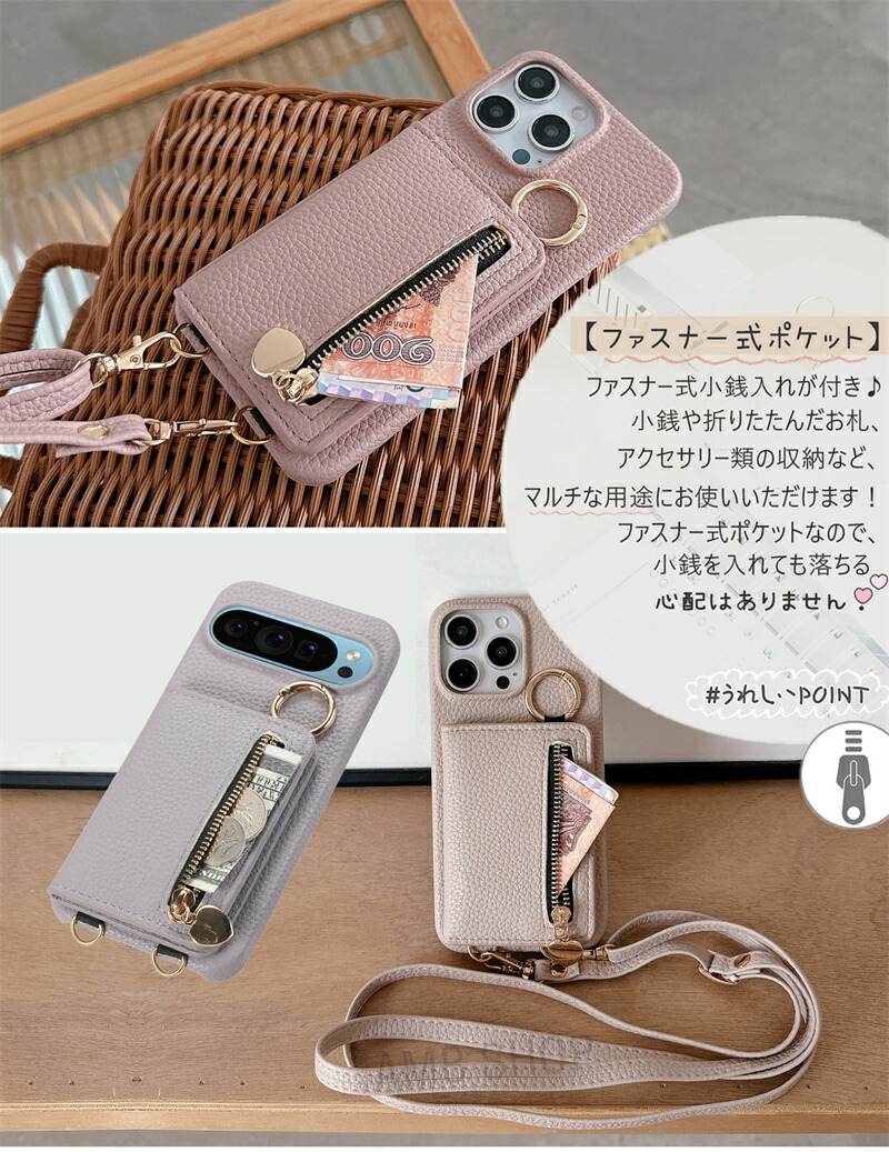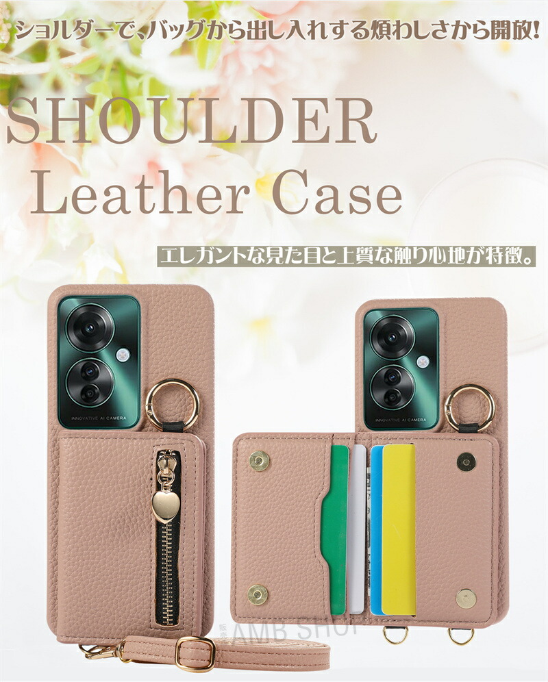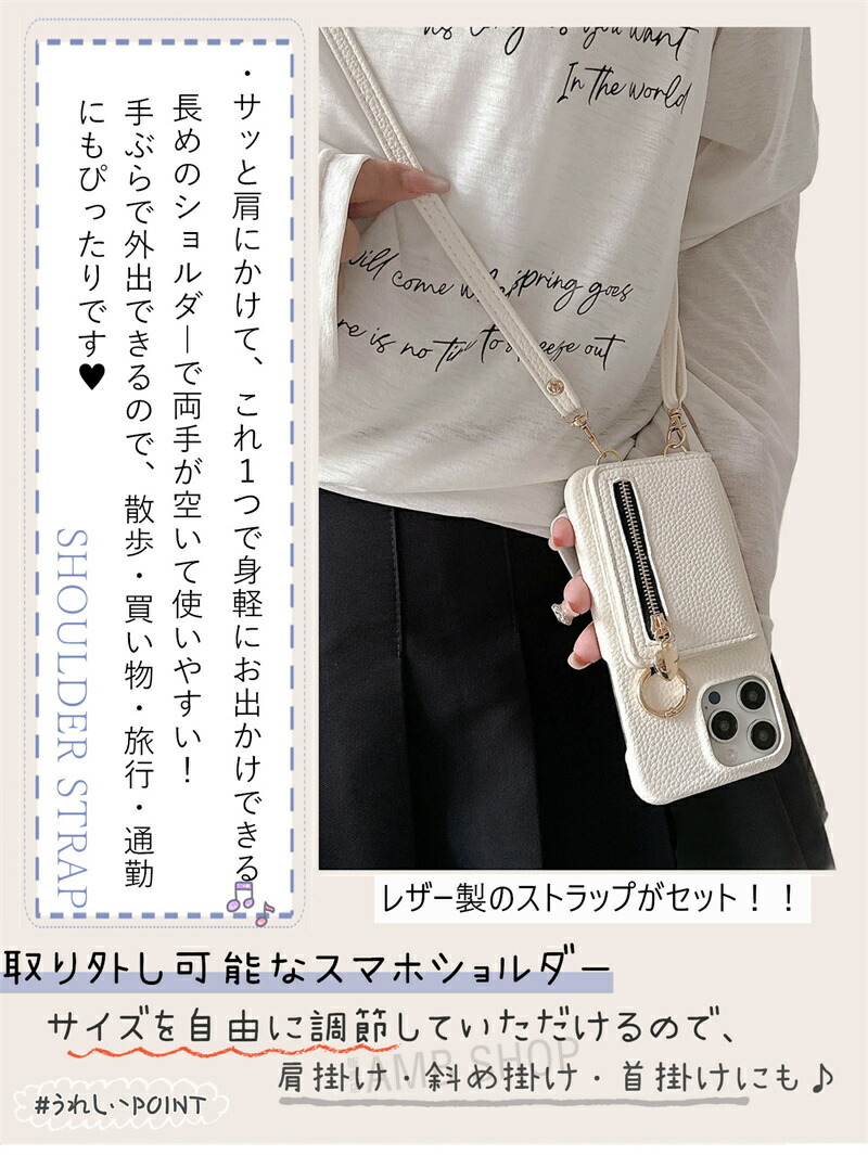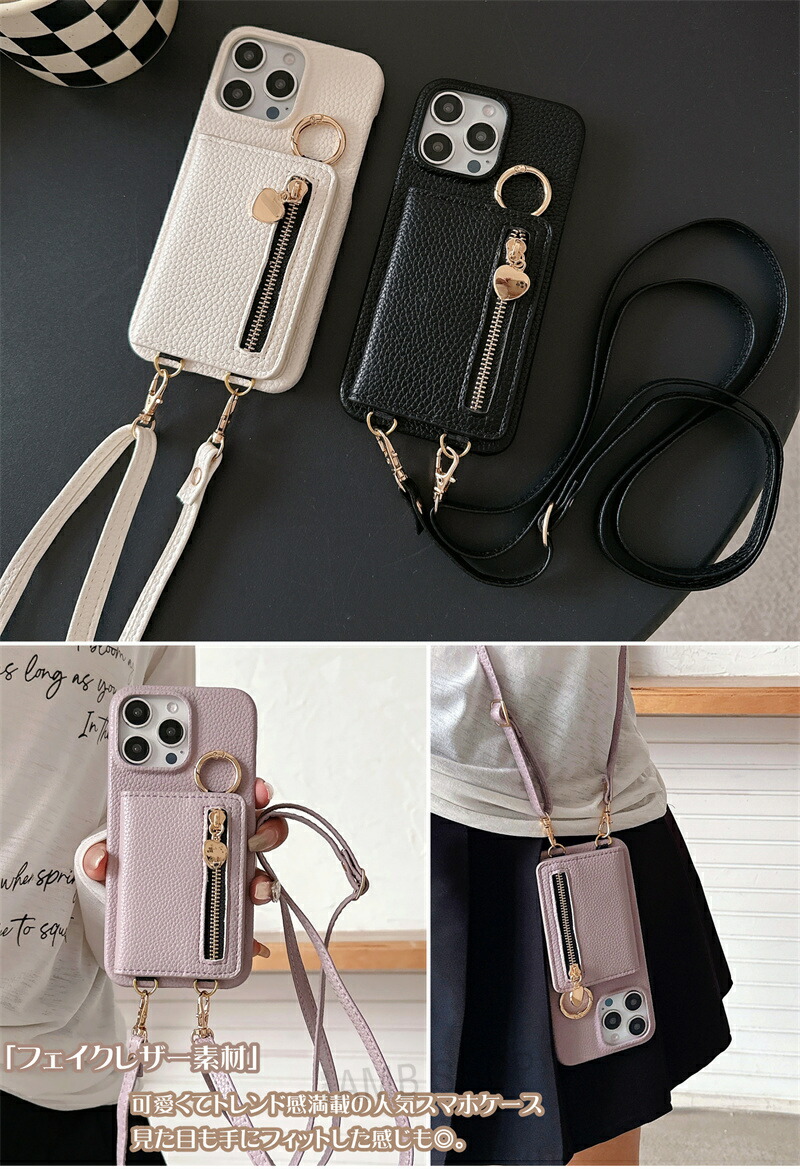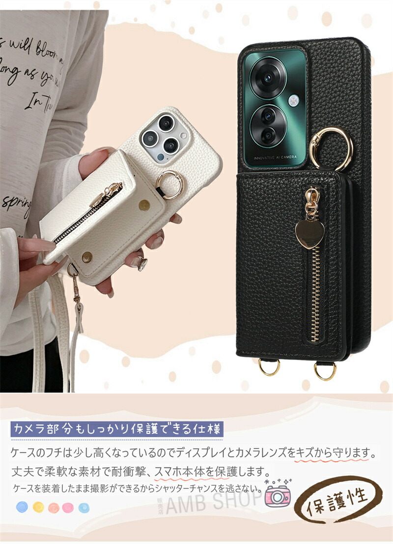 スマホカバー 大人かわいい AMB スマホショルダー 背面手帳型 スマホケースショルダー AM-B タイプ ケース ジッパー チャック付き ジップ A-M-B SHOP ファスナー付き