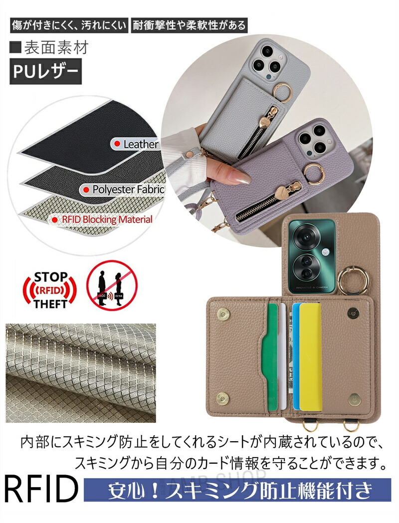 RFID機能 カード入れ 小銭入れ ス スマートフォン タブレット 特集 ブラック ベージュ ベージュブラウン ホワイト ブルーグレー パープル ベージュピンク ラベンダー OPPO Reno13 A OPPO A3 5G OPPO Reno11 A OPPO Reno9A/Reno7A OPPO A79 5G