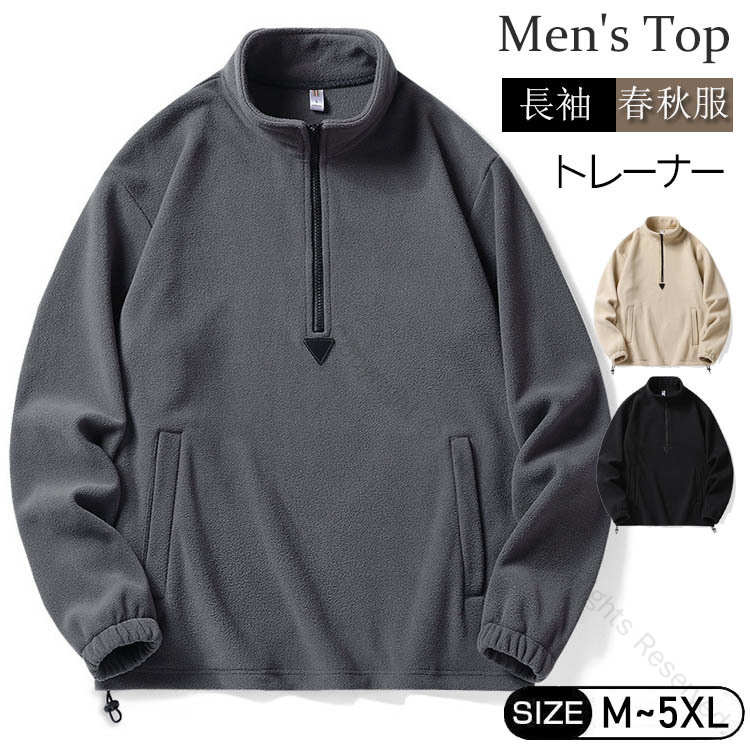 メンズ ハーフジップ トレーナー 薄起毛 フリース スウェット 長袖 ハイネック 無地 防寒 ジッパー付き トップス スウェットトレーナー インナー 春秋 秋冬対応 快適着用感 ゴルフ