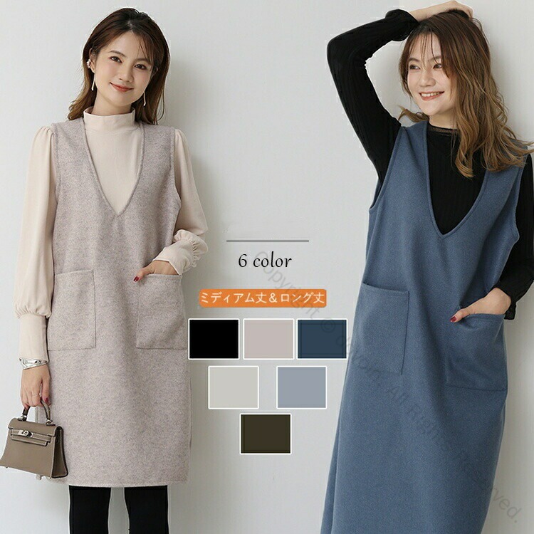 ジャンパースカート 低身長 春 ワンピース 大人可愛い きれいめ ジャンスカ ポケット付き ロング丈 膝丈 ショート丈 レディース 女性用 袖なし 上品 無地 大きいサイズ 夏 大人 30代 秋冬