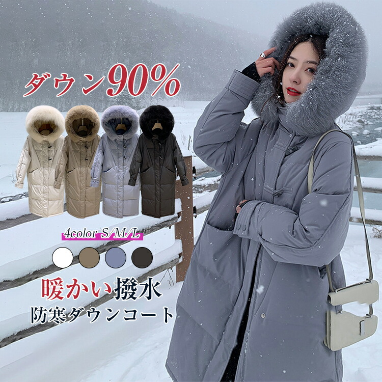 ダウン90% 暖かい ダウンコート コート レディース 冬 ダウンジャケット ロングコート ダッフル 帽子付き ポケット付き ファー アウター ジャンパー 前開き ロング 厚手 防寒 着 軽量