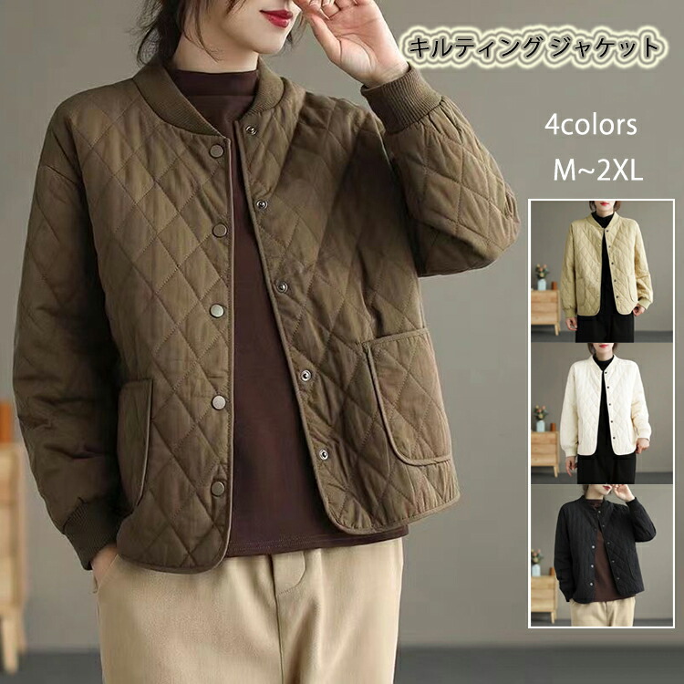 キルティングジャケット レディース 秋 冬 キルティングコート アウター 中綿 中綿ジャケット 前開き ポケット付き 防寒コート ジャケット 大人 ゆったり 20代 30代 40代 50代