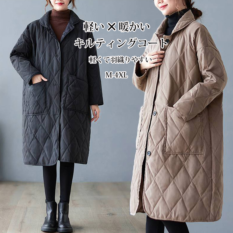 キルティングコート レディース 秋 冬 ロングコート アウター 中綿 中綿コート 前開き ポケット付き 防寒コート トップス ジャケット 大人 ゆったり 20代 30代 40代 50代