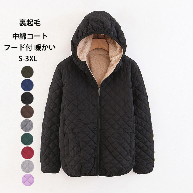 裏起毛 キルティングジャケット レディース 中綿コート 秋冬 ショートコート フード付き 長袖 中綿パーカー ポケット コート 無地 薄手 キルティングコート ジャケット アウター ブルゾン 裏ボア