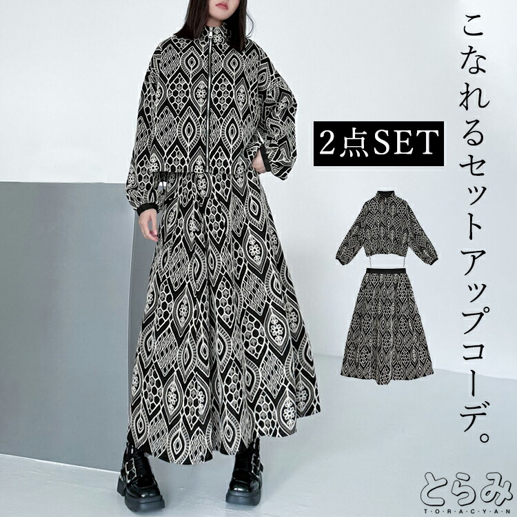 アウター ボトムス セットアップ ジャケット ファスナー 長袖 スカート ロング ハイデザイン デザインセットアップ ゆったり シンプル モード 体型カバー 着痩せ 大きめ