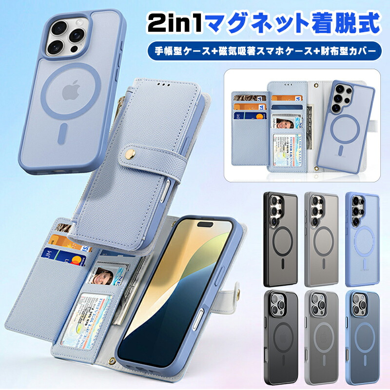iPhone17proケース Galaxy S25 ケース 手帳型 分離式 2in1 Plus iPhone17Air 背面カード収納 レザー iPhone16 MagSaf S25Ultra