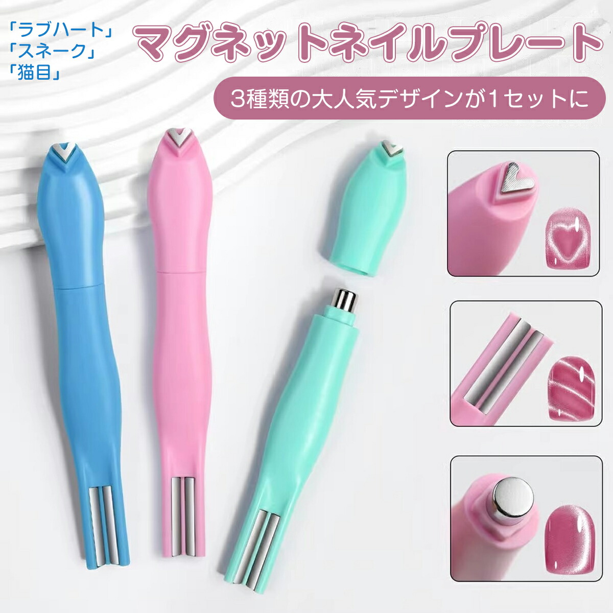 マグネットネイルプレート 3IN1 セット ネイル用マグネット 強力磁石タイプ マグネット 磁石 ラブハート スネーク 3タイプ デマグネットジェル ジェルネイル 猫の目