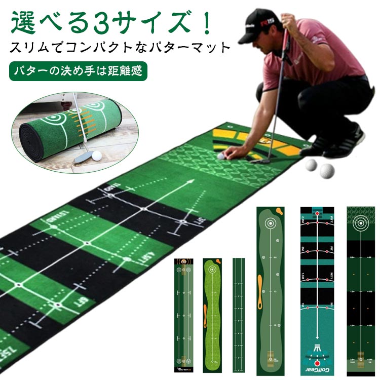 パターマット 3 ゴルフ パター 練習 マット 室内 静音 ゴルフマット ベント 芝 パッティング パター練習 パット練習 絨毯 カーペット プリントゴルフボール パターカップ 送料無料