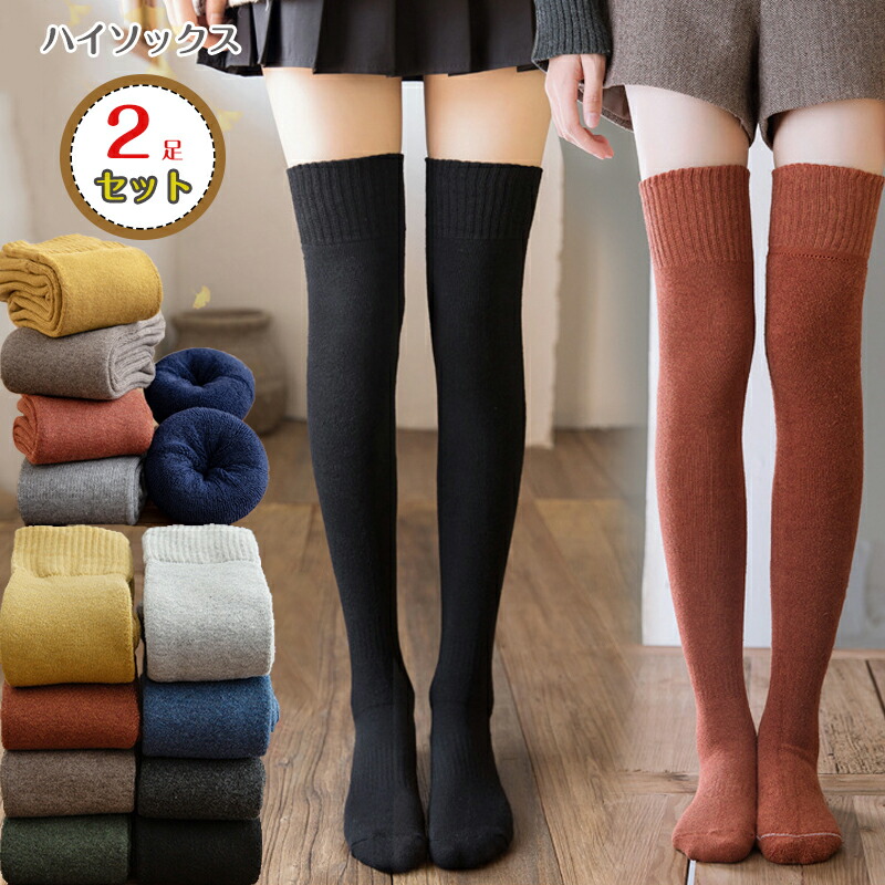 2足セット ハイソックス 靴下 平編み無地 ソックス ニーハイソックス綿 ロング ロングソックス ルームソックス 暖かい 冷え対策 大人 中学生 レディース 保温 膝上 バレンタインデー プレゼ 秋冬