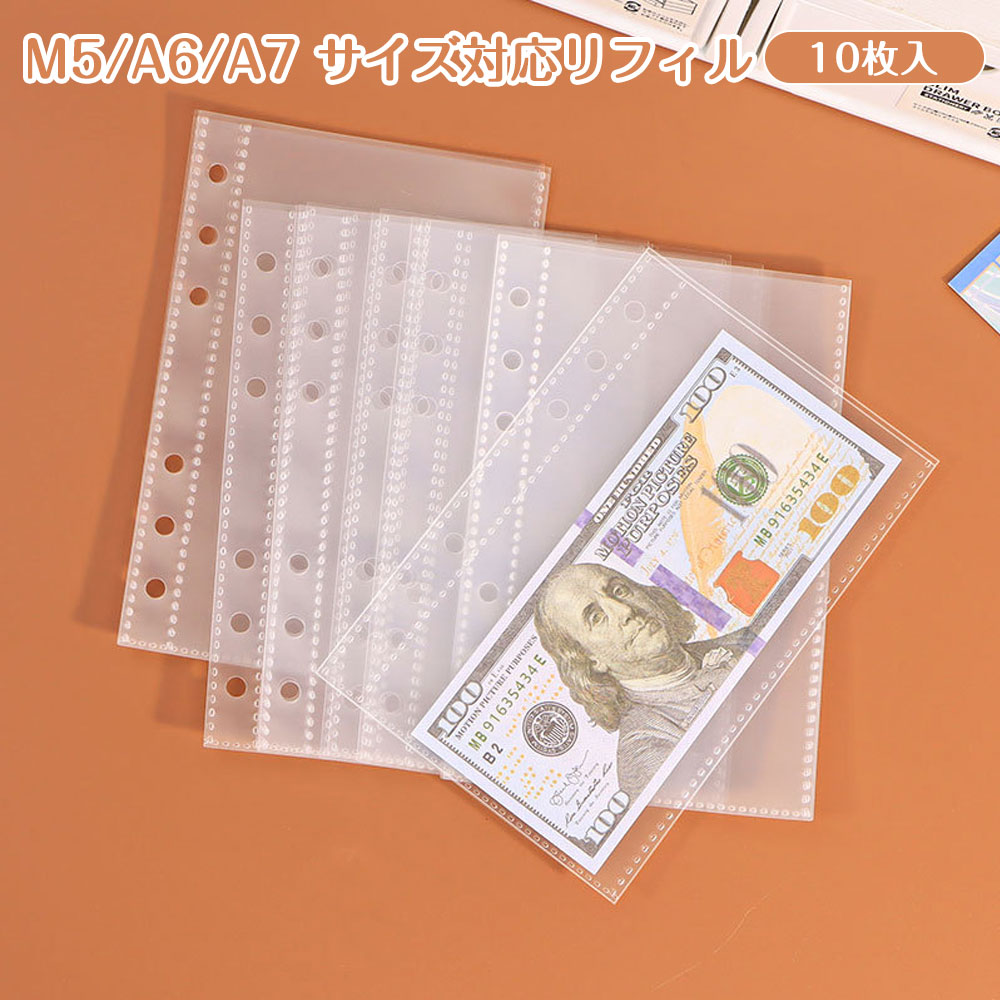M5 A6 A7サイズ対応 リフィル 10枚入り 超透明 超厚 剥離紙 シール台紙 対応 バインダーインナー 収納ポケット 拡張 手帳リフィル