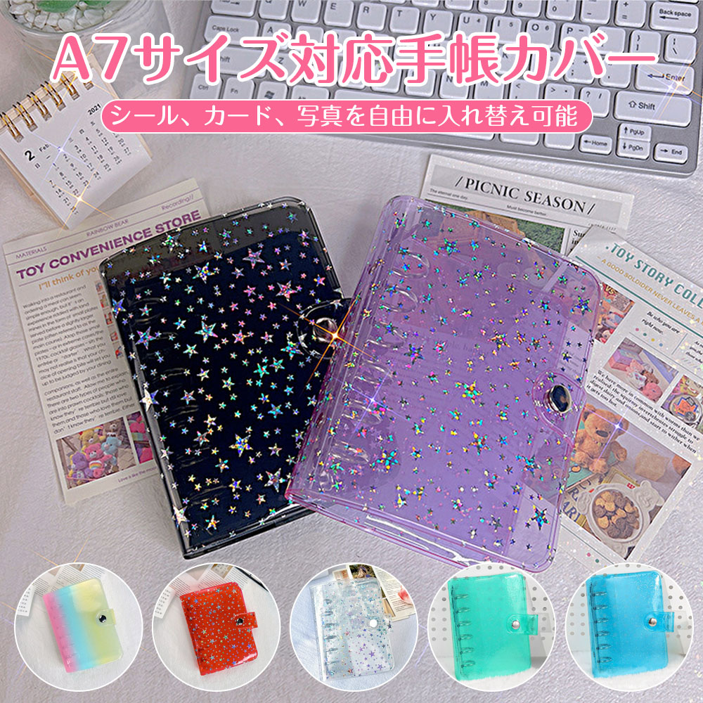 キラキラ輝く シール帳カバー PVCカバー A6 シール収納 クリア手帳 透明バインダー 6穴リング カスタマイズ手帳 DIYデコ リフィルセット コンパクト手帳 スケジュール帳 シール帳 ミニ手帳
