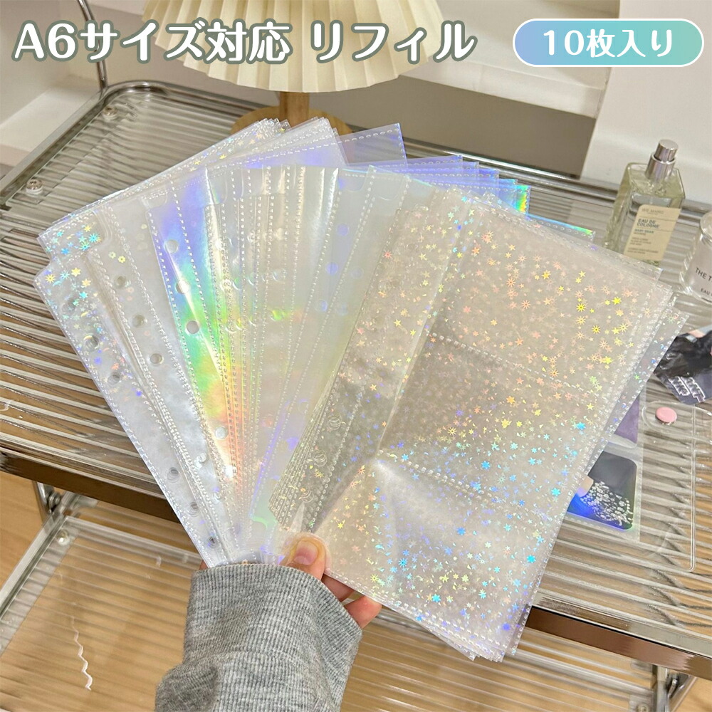 A6サイズ対応 リフィル 10枚入り 3タイプ選べる おしゃれ 透明 超厚 剥離紙 シール台紙 対応 バインダーインナー 収納ポケット 拡張 手帳リフィル