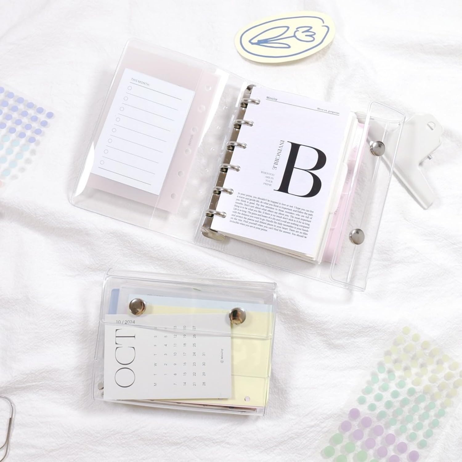 かわいいヒナギク柄やヒョウ柄 星柄が魅力の透明システム手帳 使いやすい6穴リングでミニサイズも豊富なリフィル100枚付き