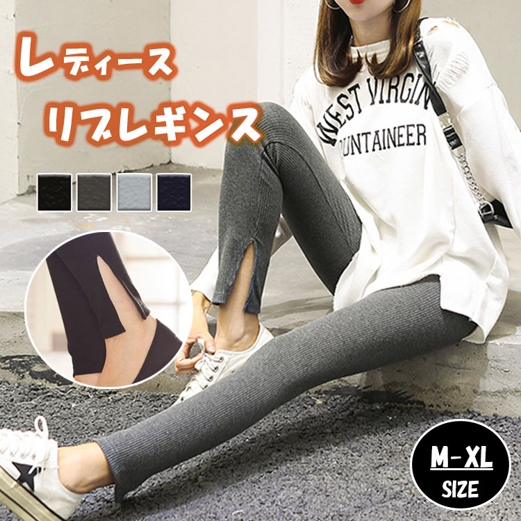 レギンス リブレギンス レディース リブ素材 ストレッチ性 秋冬 厚め リラックス 重ね着 リブタイプのレギンス スリット 外側スリット 内側スリット 重ね着もいい 万能アイテム シン 一枚穿きもいい