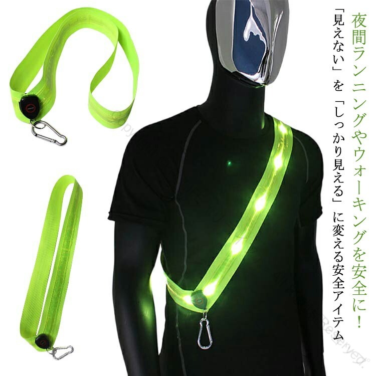 充電式ランニングライト タスキタイプ 夜間の視認性アップ 自転車やジョギングに最適 安心安全の反射効果付きギフトにもおすすめ