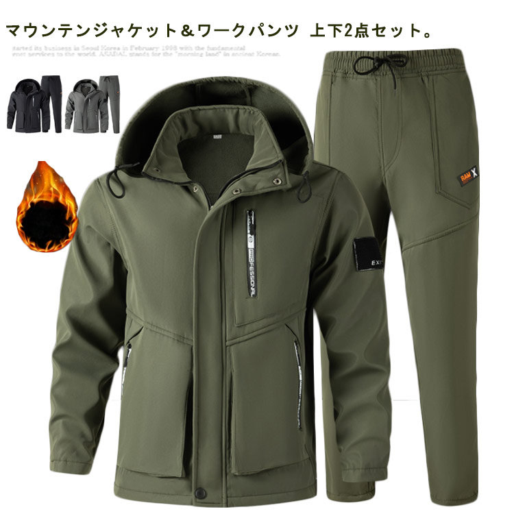 マウンテンジャケット 裏起毛 メンズ 上下セット 厚手 防風 防寒 防水 撥水 作業服 ミリタリー マウンテンパーカー ワークパンツ セットアップ 登山服 アウトドアウェア 長ズボン ハ スキーウェア