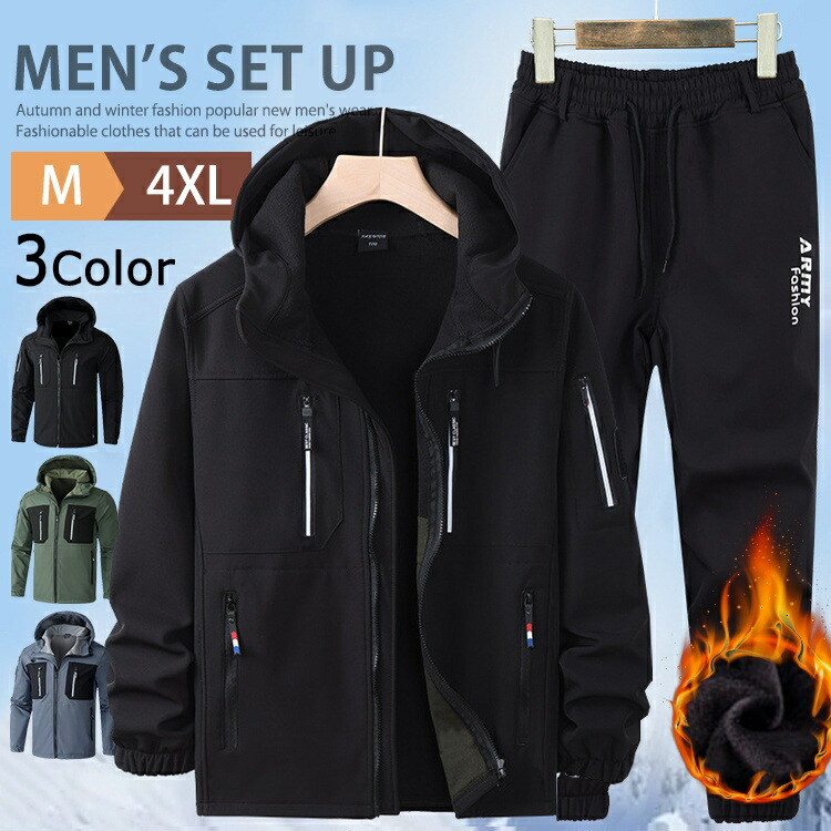 裏起毛 上下セット マウンテンジャケット 防寒 あったか マウンテンパーカー ロングパンツ 釣り、登山などアウトドアスポーツや屋外作業に最適!