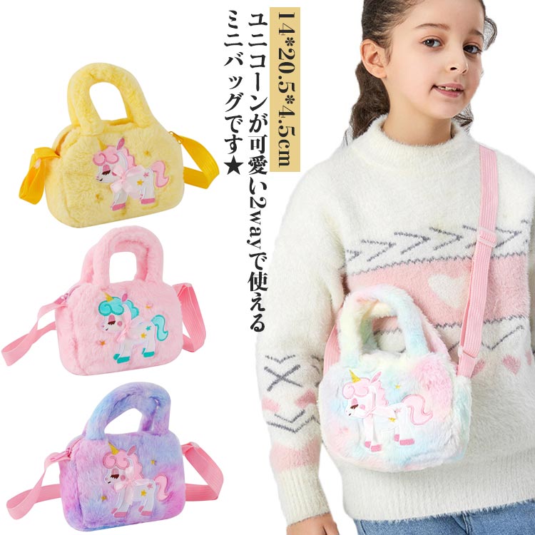 キッズ 子供 ユニコーン バッグ ミニ バッグ ふわふわ ショルダーバッグ もこもこ かばん プリンセス
