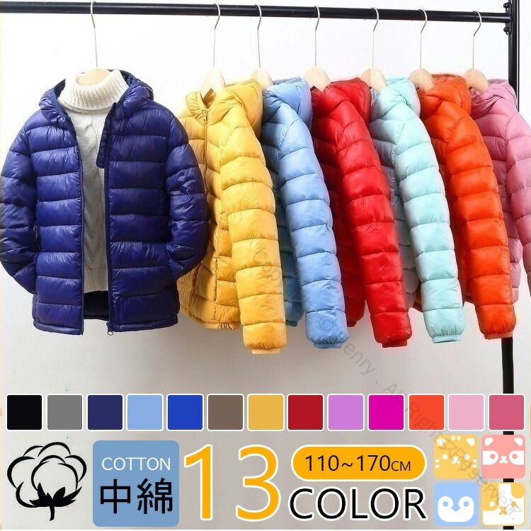 110cm-170cm ジャンパー ジャケット 中綿 コート ライトダウン 子供服 ベビー 冬服 防寒 女の子 男の子 ジュニア ふわふわ オーバー 冬 軽量 アウター 子ども フード付き 暖か 厚手