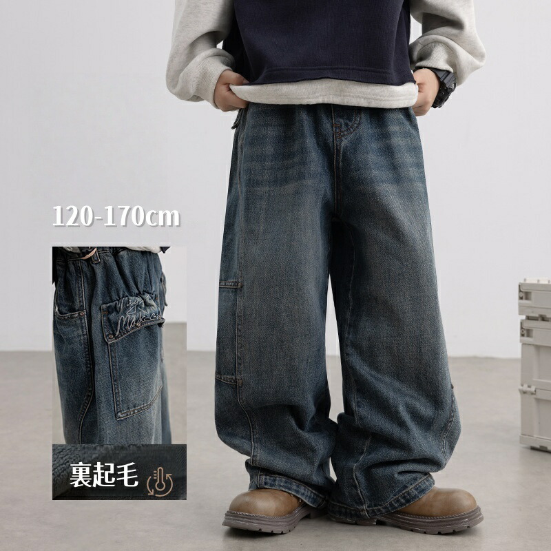 子供服 男の子 ズボン 冬 裏起毛 170 デニムパンツ ジーンズ 大きいサイズ スウェットサルエルパンツ キッズ デニムロングパンツ 通学 小学生 中学生 韓国子供服 120cm 1 高校生