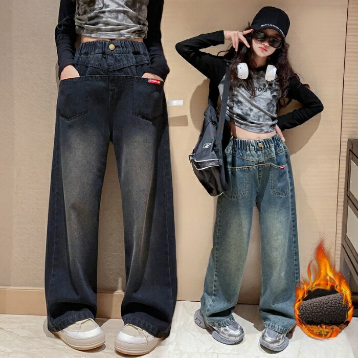 キッズ デニムパンツ 女の子 冬 裏起毛 春秋 ダンス服 子供服 女の子 デニムパンツ 小学生 中学生 通園 通学 韓国子供服 140 150 160