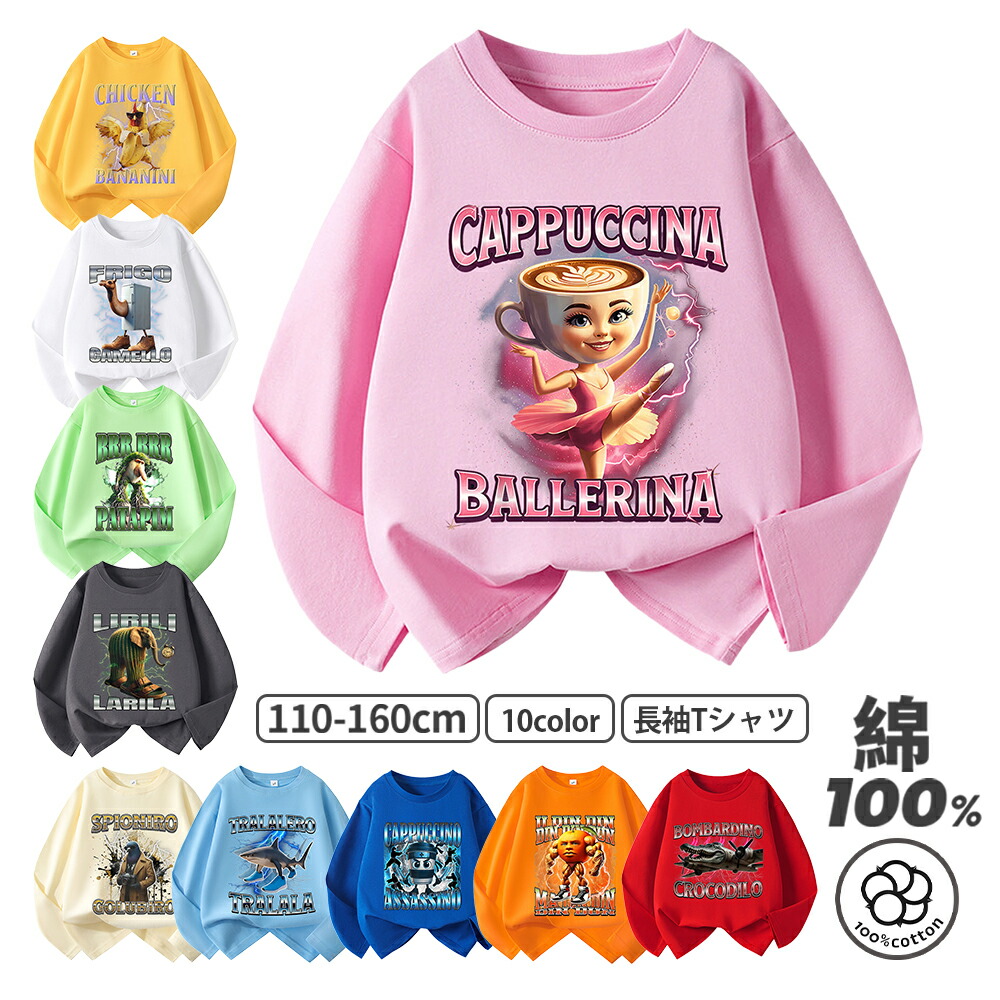 イタリアンブレイン ロット長袖 tシャツ ト Italian brainrot トゥントゥントゥンサフール TungTungTungSahur 子供服 綿100% 長袖Tシャ イタリアンブレインロット