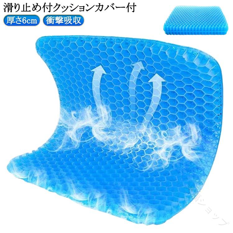 二重ハニカム構造 極厚ゲルクッション ハニカム座布団 椅子用 大サイズ 厚さ6cm クッションカバー付 整体師推薦 特大 卵が割れない オフィス デスクワーク対応 大きいサイズ