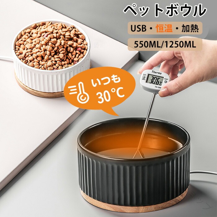 フードボウル 食器 猫 犬 ペット用加熱ボール 一体型 ペット保温ボウル usb 恒温加熱 30℃ 餌入れ 猫用ドリンクボウル セラミック 犬と猫用温水ボウル 冬季加熱 大容量 清潔 恒温温水ボウル