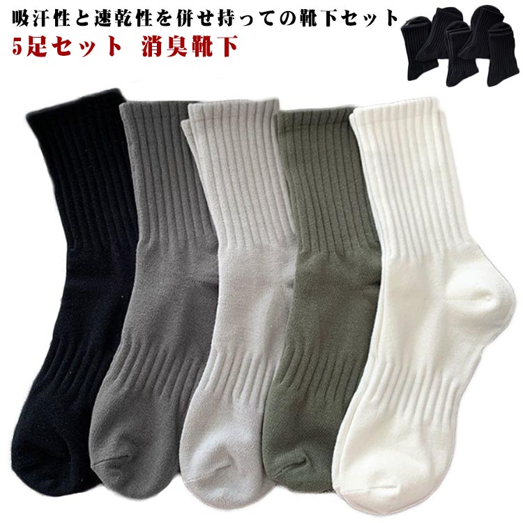 無地 靴下 メンズ ソックス 5足 セット くつ下 消臭靴下 蒸れない くつした 男性用 リブ編み 防臭 臭わない 暖かい おしゃれ カジュアル ビジネス 防寒 アウトドア スポーツ 社会 冷え