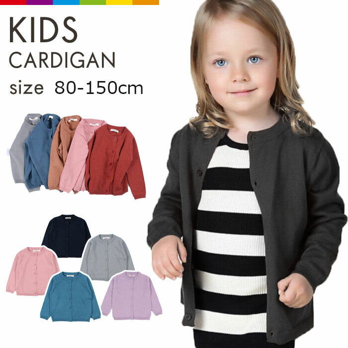カーディガンキッズ カーディガン 子供服 こども服 キッズ ベビー 長袖 羽織り ニット トップス ラウンドネック 丸首 無地 前ボタン 前開き シンプル 可愛い きれいめ 通園 通学 かわいい