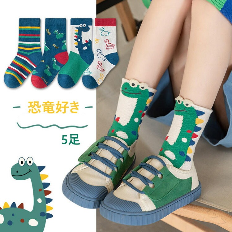 恐竜好きに最適の5足セット 通学や普段使いにおすすめ 耐久性と快適性を兼ね備えたキッズ用靴下 誕生日やハロウィンのプレゼントに