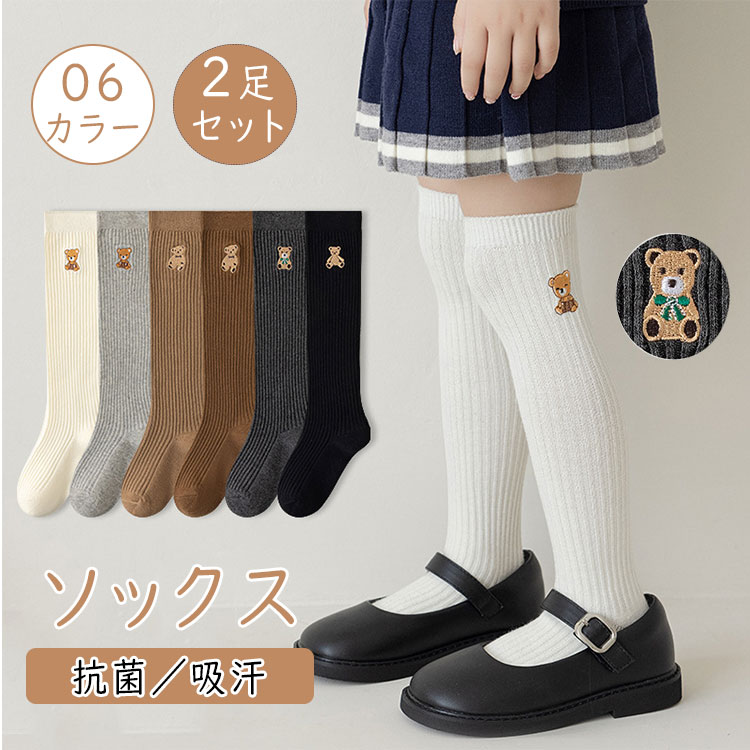 キッズ ソックス オーバーニーソックス 子供 靴下 ジュニア 女の子 2足セット 綿混 丈夫 フィット 小学生 子供用靴下 入園式 卒園式 入学式 卒業式 発表会 結婚式 春 秋 おしゃれ フォーマル