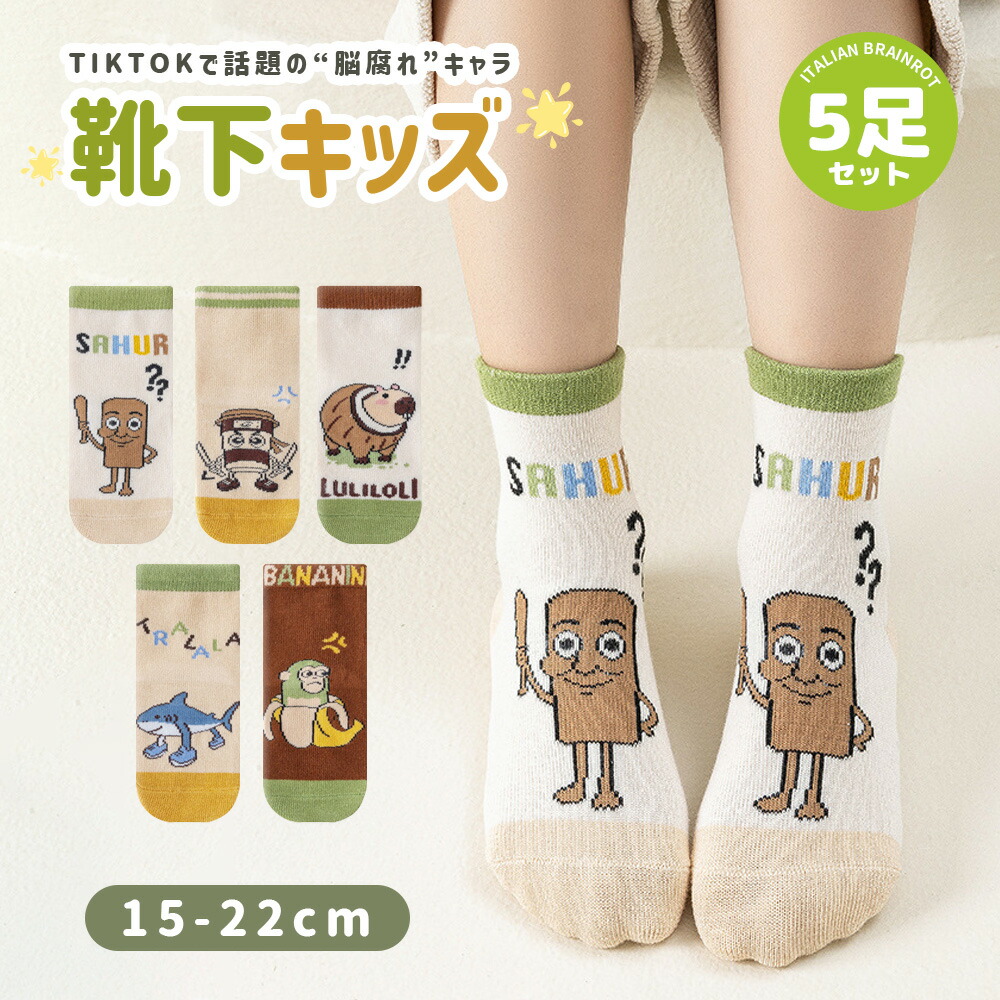 イタリアンブレインロット 靴下 5足セット トゥントゥントゥンサフール Italian brainrot TungTungTungSahur 子供 Tralalelo Tralala グッズ 5ペア