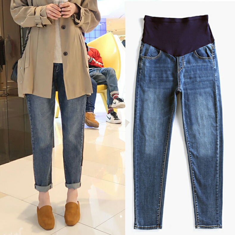 マタニティ デニムジーンズ 妊婦 ダメージ加工 スキニー ジーンズ カジュアルパンツ アジャスター付き 調整可能 らくちん プレママ