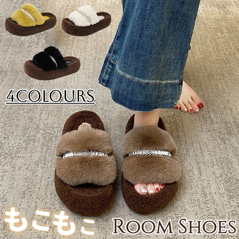もこもこ スリッパ ルームシューズ レディース ファーサンダル 前開き スリッポン 厚底ファーサンダル 外履き 室内履き ボアスリッパ あったか 柔らかい 韓国風 オールシーズン 海外通販 おしゃれ