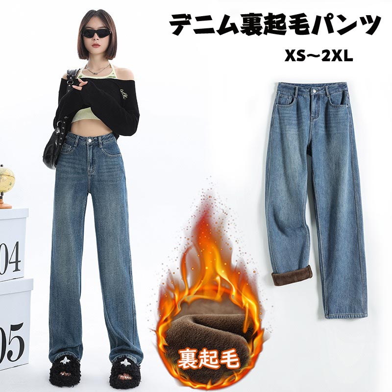 春秋タイプ新作 裏起毛デニムパンツ ジーパン 九分丈 十分丈 十一分丈 レディース 裏起毛 ジーンズ ワイドパンツ ゆったり ワイド ストレート ハイウエスト パンツ フリース 起毛 韓国フ 裏ボア